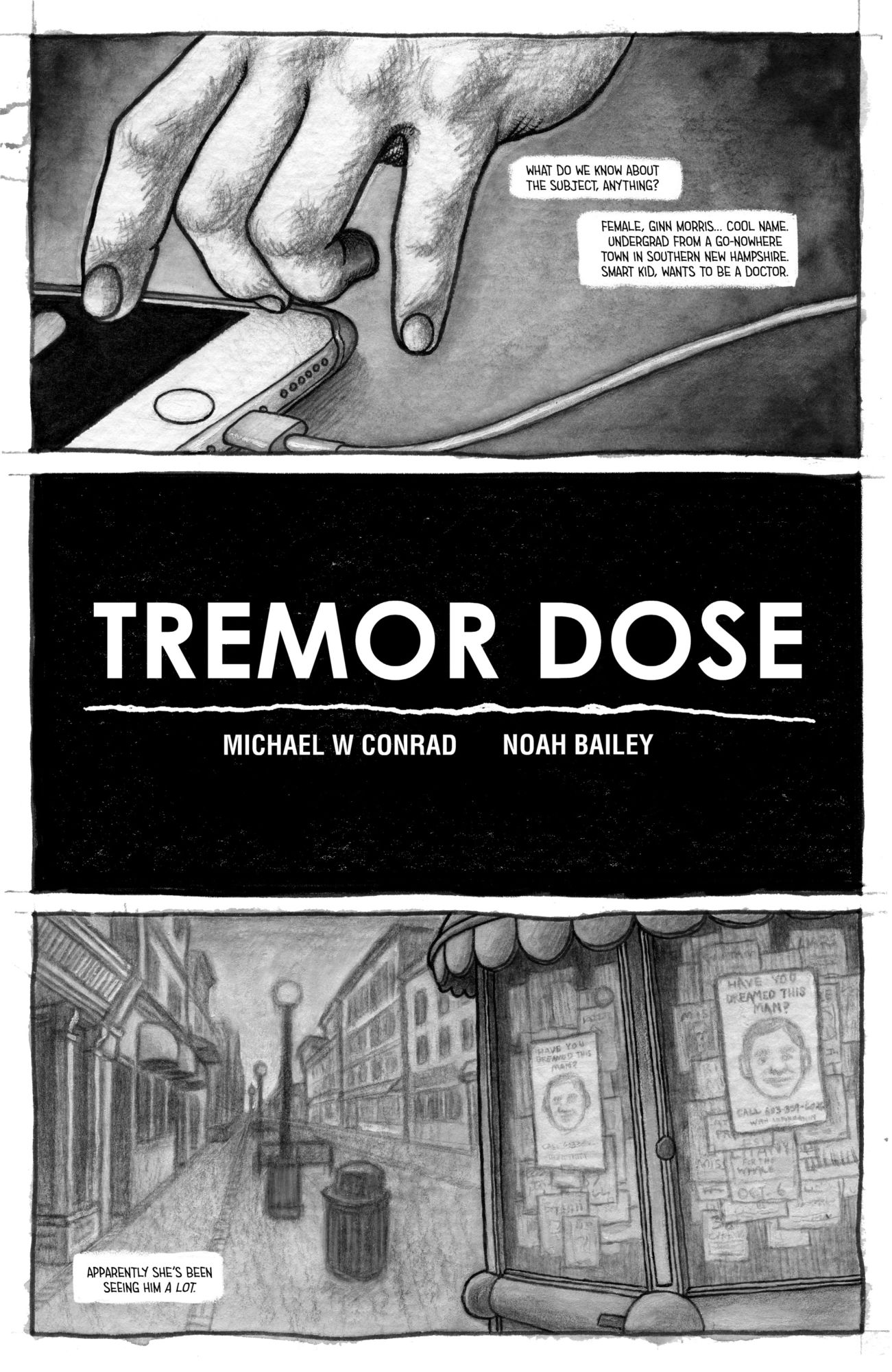 Written by Michael Conrad with art by Noah BaileyEveryone dreams, but are these dreams our own? Who controls our thoughts when we're sleeping? Ginn, is a young college student who has been having wildly disturbing nightmares featuring a man she has never met. When she finds a flyer with his picture and the question, "Have you dreamed this man?" she submits to an interview that begins to unravel her perceptions of reality.