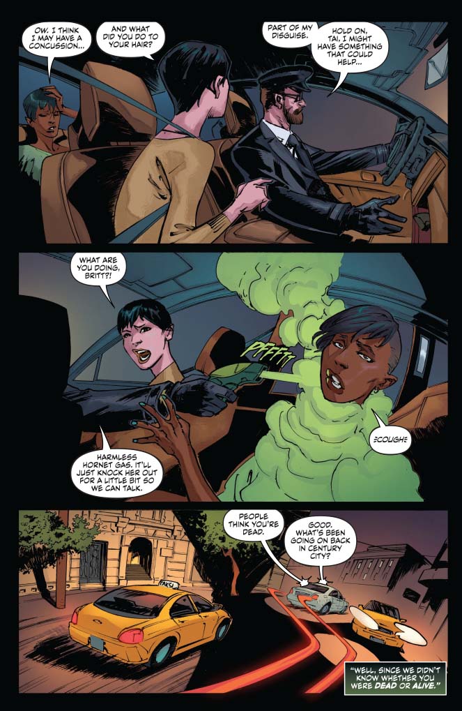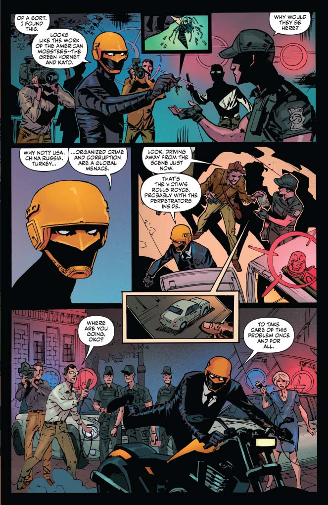 The big challenge in this issue was getting them into Green Hornet gear without seeming ridiculous. It's harder than it sounds, but you'll get to see a lot more in Issue 4.