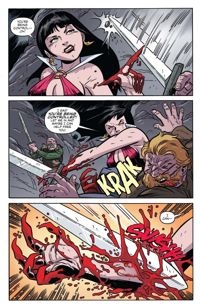 Here's where we throw in the first bit of Savage into this Savage Tale — Vampirella's arm getting cleaved off by a sword! It wasn't even in the initial outline. It just sort of happened while scripting.