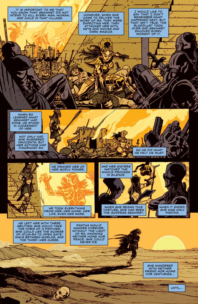 So Pantha… her history is as convoluted as Vampirella's in far fewer appearances. So, we wanted to play on some of the things that were built into her previous solo mini, where they made it clear that she used to be this Egyptian goddess. And hopefully, someday, we'll get to do more with her sisters too.