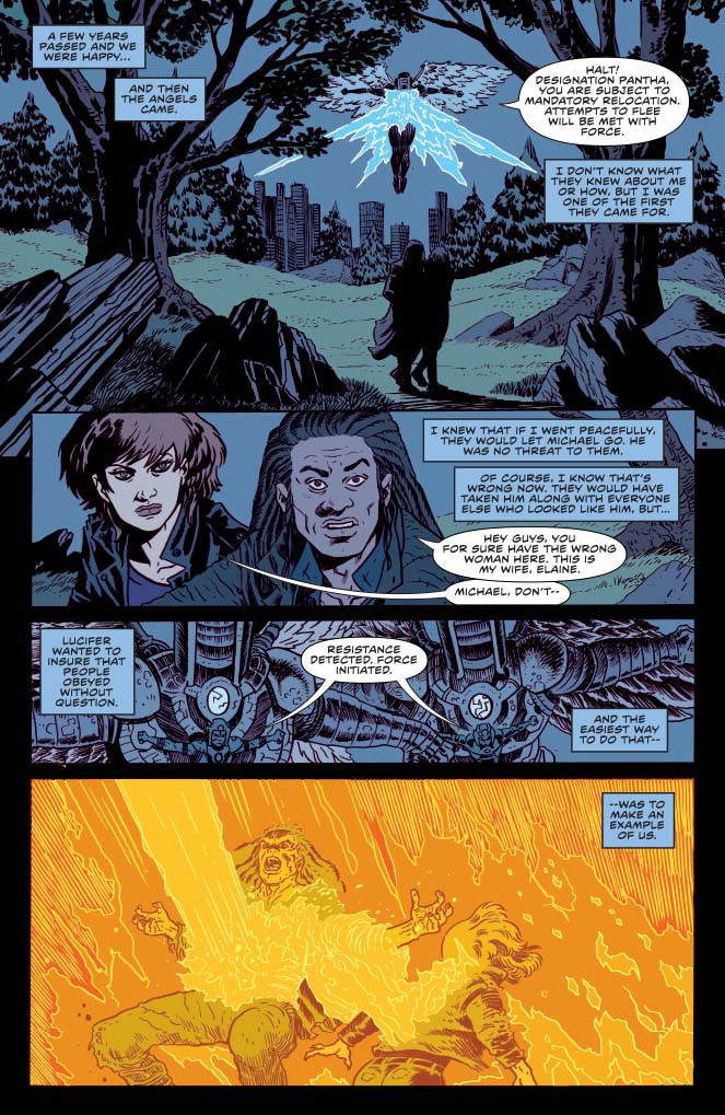 One of the biggest questions for me going into this arc was something that maybe certain types of comics ought to think about more: If nobody can die, what are the stakes? And the answer I came up with, I think, was that the inability to die opens up the possibility of eternal torture and degradation of that life.