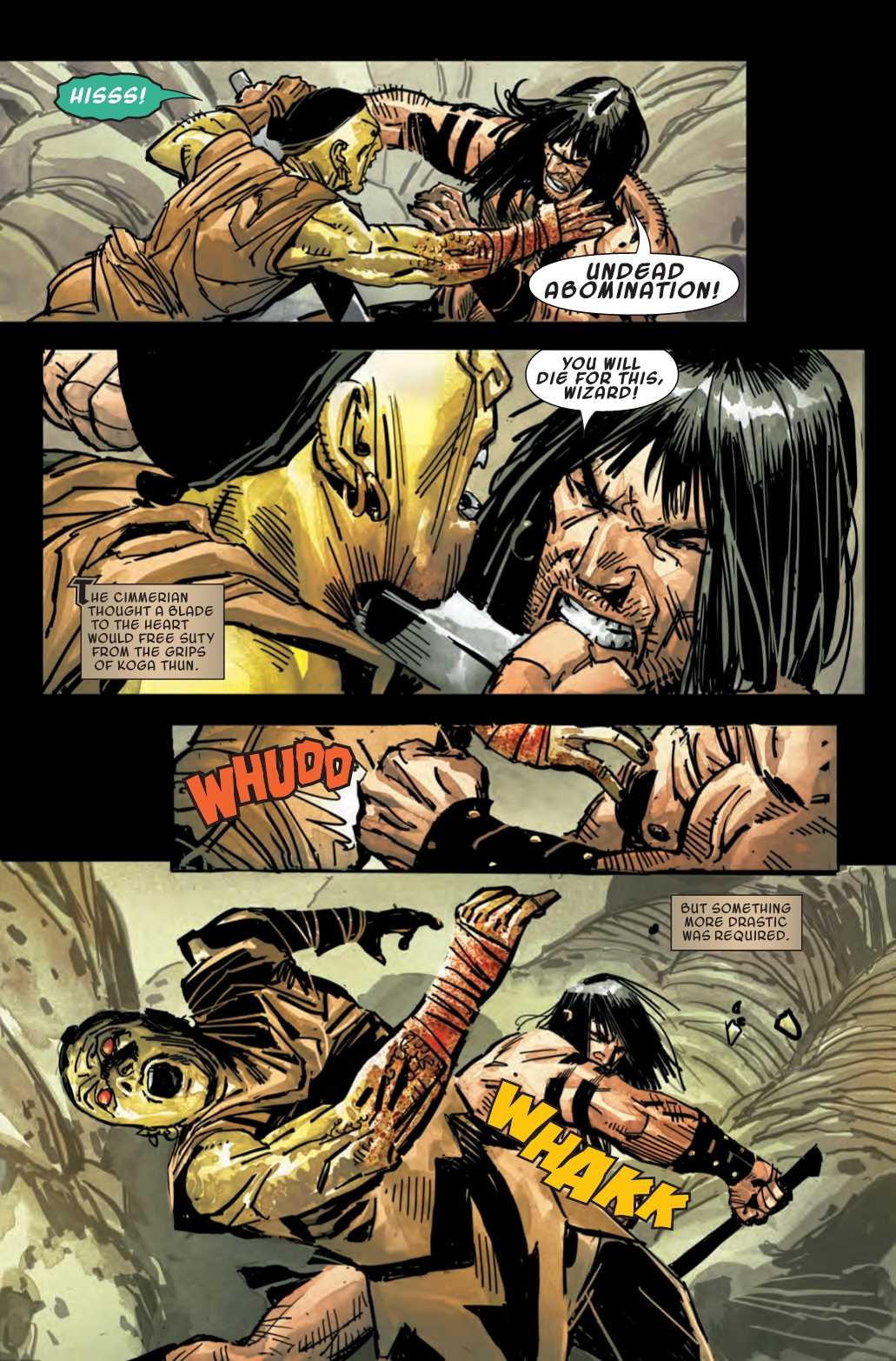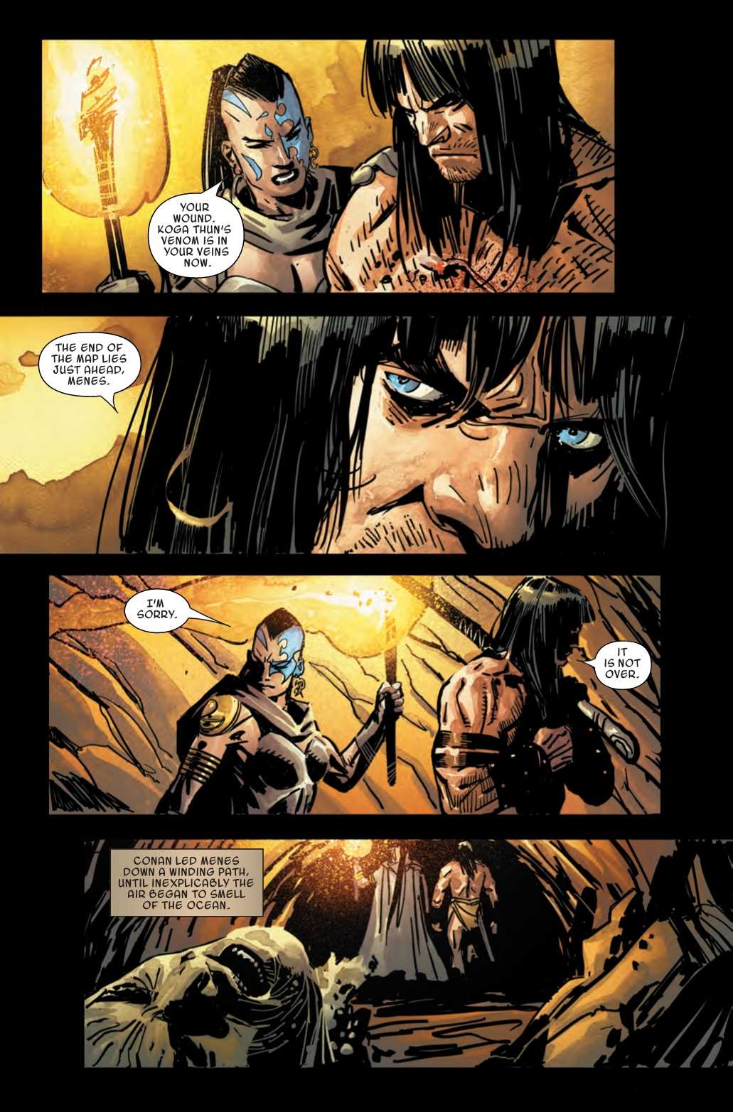 Savage Sword of Conan sees Conan the Barbarian facing the evil sorcerer Koga Thun, as basic a Conan premise as can be. But in this preview of Savage Sword of Conan #5, as Conan and Menes spelunk in a dark cave, things take an exciting and unexpected turn. No, we're not talking about the fact that Conan is living on borrowed time as Koga Thun's Venom races through his veins, soon to bring him under the sorcerer's control…