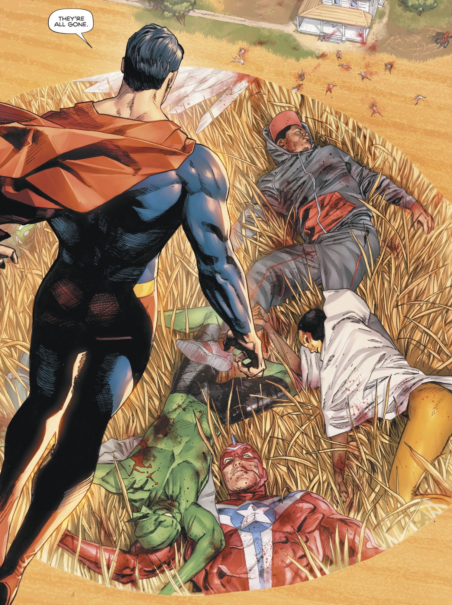 But it is notable that this was promoted by DC as a mass shooting but, from this first issue, however people died, it didn't seem to be from bullets. Maybe a more futuristic technology?