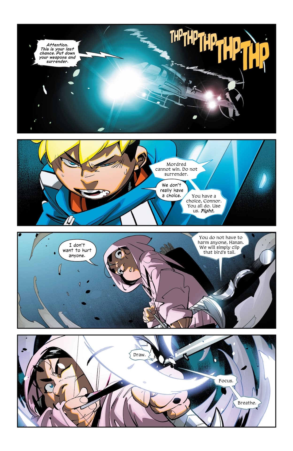 TOM TAYLOR AND DANIELE DI NICUOLO'S EPIC SEQUEL TO THE KING ARTHUR SAGA AMPS UP THE ACTION! Just because a sword is telling you not to surrender to hostile forces doesn't mean it knows what it's talking about. The Children of the Round Table are in trouble. They've snuck out of their homes, which isn't great. But they also find themselves surrounded by enemies and hopelessly outnumbered. These friends are destined to be heroes, but is destiny about to be cut short?