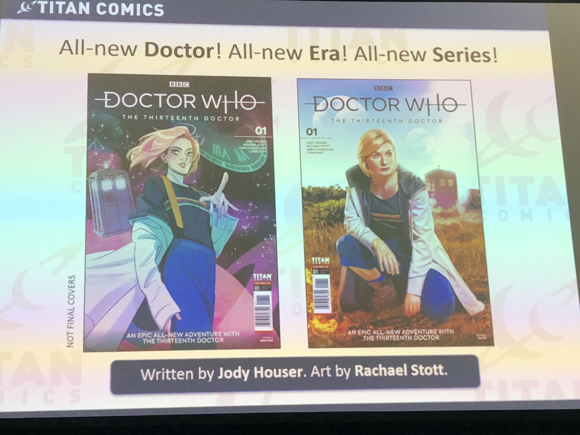 At the Diamond Retailer Appreciation Lunch at San Diego Comic-Con, Titan Comics have been showing off the covers to the upcoming Doctor Who: The Thirteenth Doctor by Jody Houser and Rachael Stott — with photo imagery and likenesses of Jodie Whittaker in the lead. Take a look.