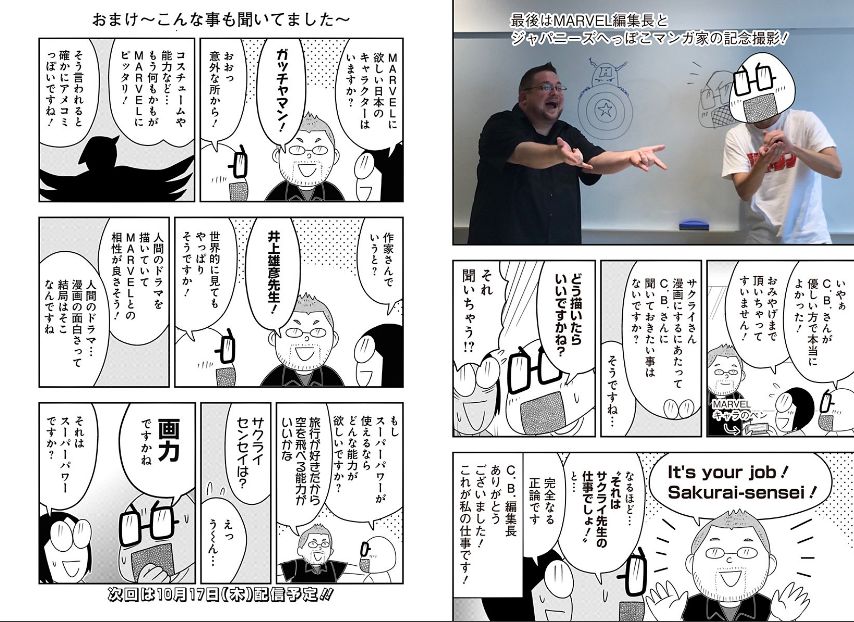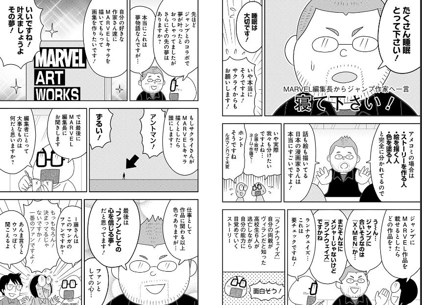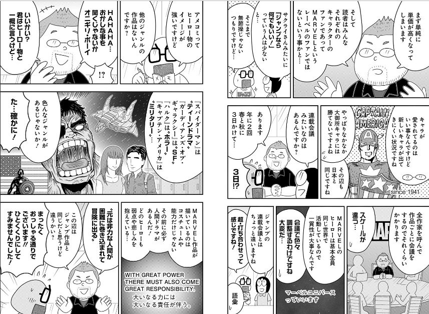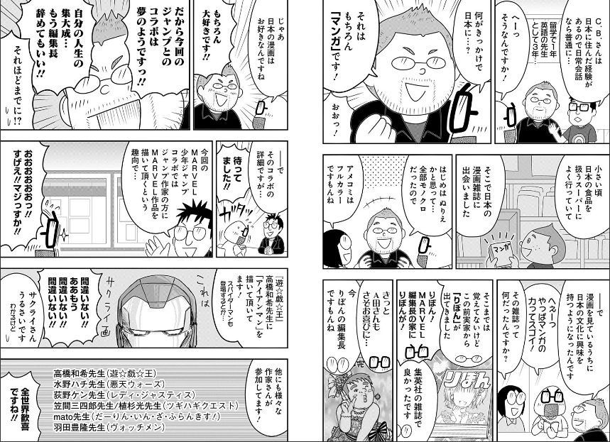 And it kicks off with a promo Manga title where the Shonen Jump Plus anthology magazine editors excitedly talk to Marvel EIC C.B. Cebulski about how Marvel Comics works and the comics are created.
