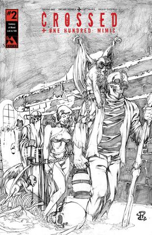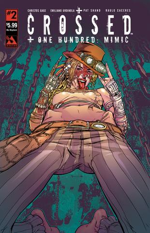 Two epic tales in every giant-size Crossed +100 Mimic issue! The world of Crossed +100 was created by Alan Moore and introduced us to an entire civilization and language set one hundred years after the Crossed outbreak devoured humanity. Now Christos Gage delves into that future with MIMIC, as one of Beau Salt's disciples invades a military base to pick apart the best and brightest. Each issue also has a second feature as writer Pat Shand teams up with artist Raulo Caceres to deliver a chapter of AMERICAN HISTORY X, based on the events Moore spotlighted as key points in the saga. Available with a sizzling array of covers: Regular by Gabriel Andrade, History X Wraparound and American History X by Raulo Caceres, Fatal Fantasy and Hellish Homage by Renato Camilo, and Ms Mayhem by Christian Zanier. Don't miss the three-cover Crossed Over set by Matt Martin, each limited to just 250 copies, nor the Century (of Blood) cover limited to 100 copies also by Camilo.