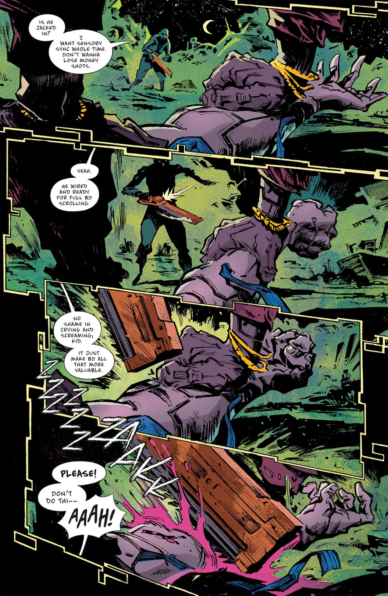 A group of friends including a netrunner, a fire graffiti artist, an aspiring rockerboy, and an autotechie set off for a fun photoshoot at a landfill, where among heaps of rubbish, scrap, and metal, they'll find a shot to die for! Rumor has it the place is haunted, and they're about to find out, in Night City, there are things far more frightening than ghosts. • A dark comedy horror set in the world of Cyberpunk 2077!• Created in close collaboration with CD Projekt Red!• Four-issue series.