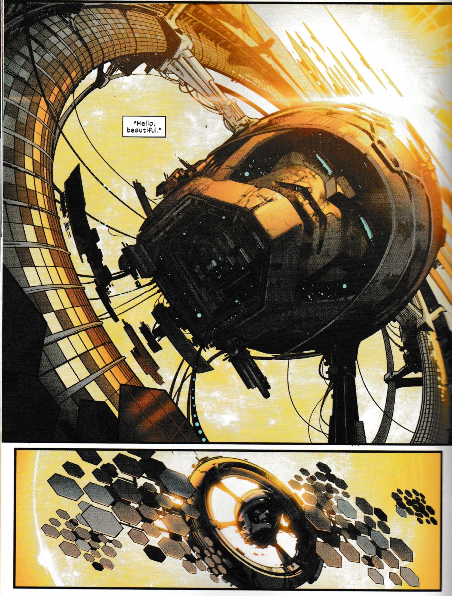 "Roy [Thomas] had painted the X-Men into a box with the Sentinel. He had to figure a way to get rid of them. So, not knowing any better, I just shot off my mouth. I said well if you are looking for a way to eliminates mutants the scientific thought at the time was that mutations are triggered by solar radiation. If you want to get rid of radiation, get rid of the sun. It gave Neal Adams the chance to draw one of the most spectacular pages I've ever seen. It was a full page of the sun with the Sentinels disappearing into the middle of it."