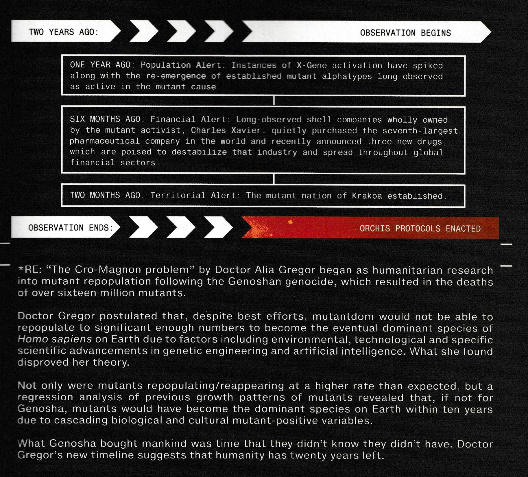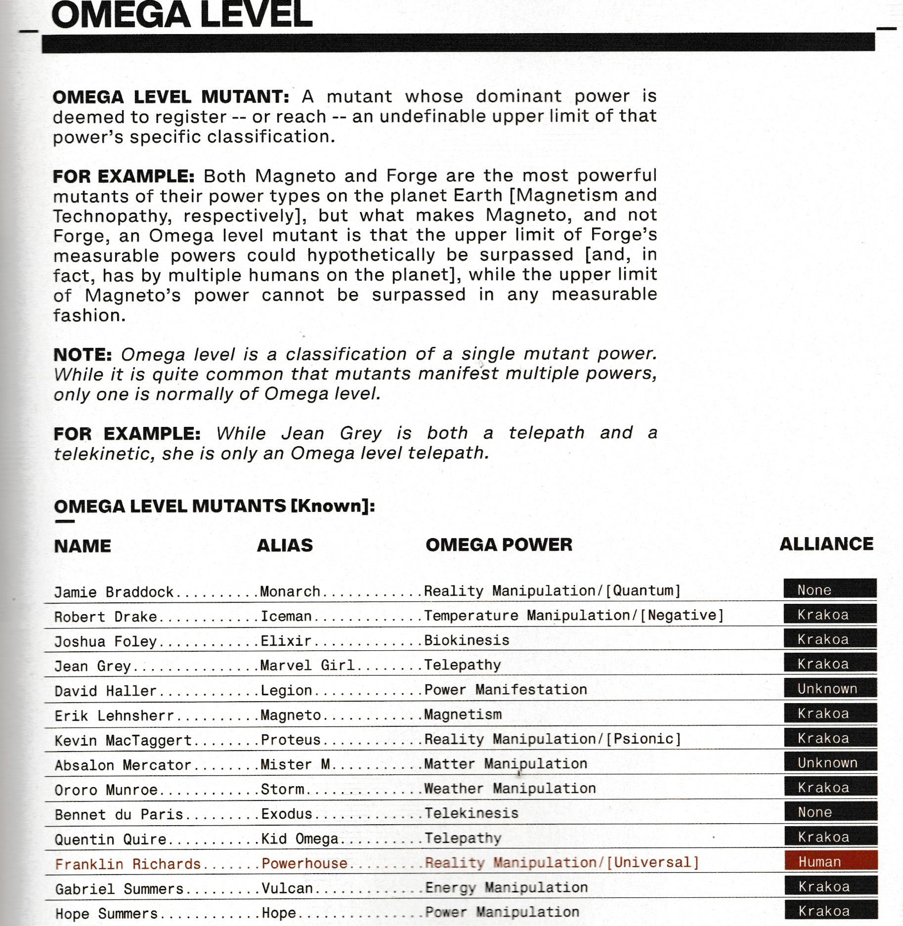 But it's the infodumps in English that will be pored over most. Such as both the definition of what an Omega Mutant is, and who counts as one.