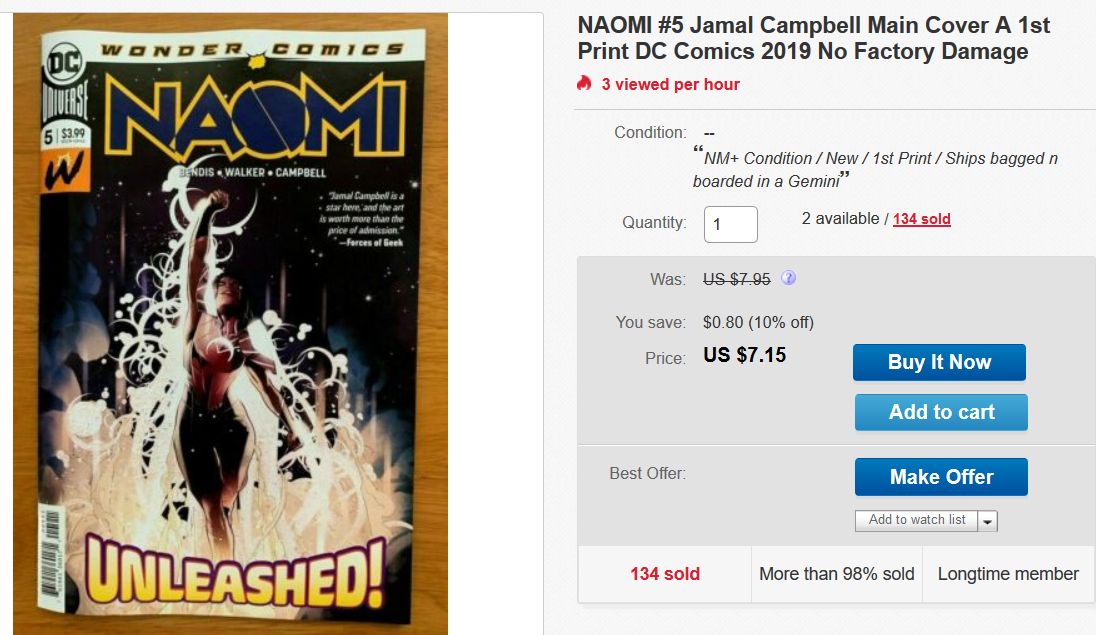 And as a result, people are even listing copies on eBay going out of their way to say whether it is damaged or not. One seller has sold over one-hundred-and-thirty copies at almost twice the cover price, plus shipping, by being that specific…
