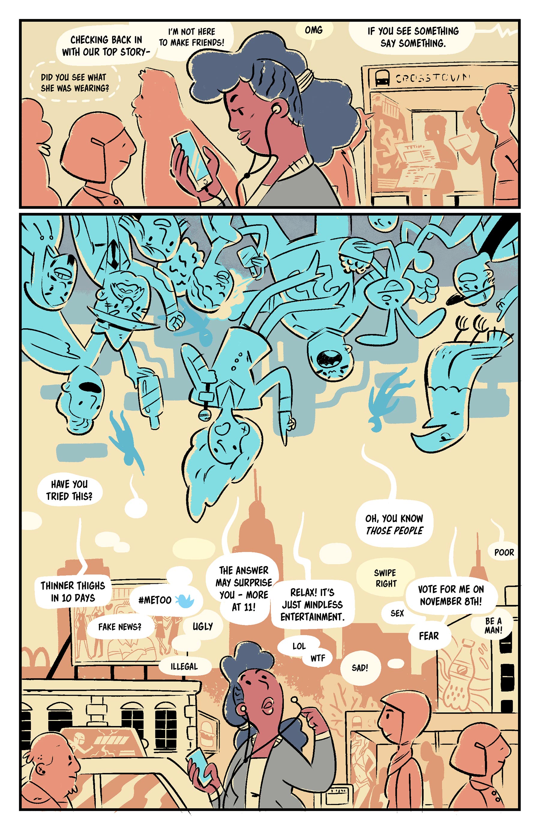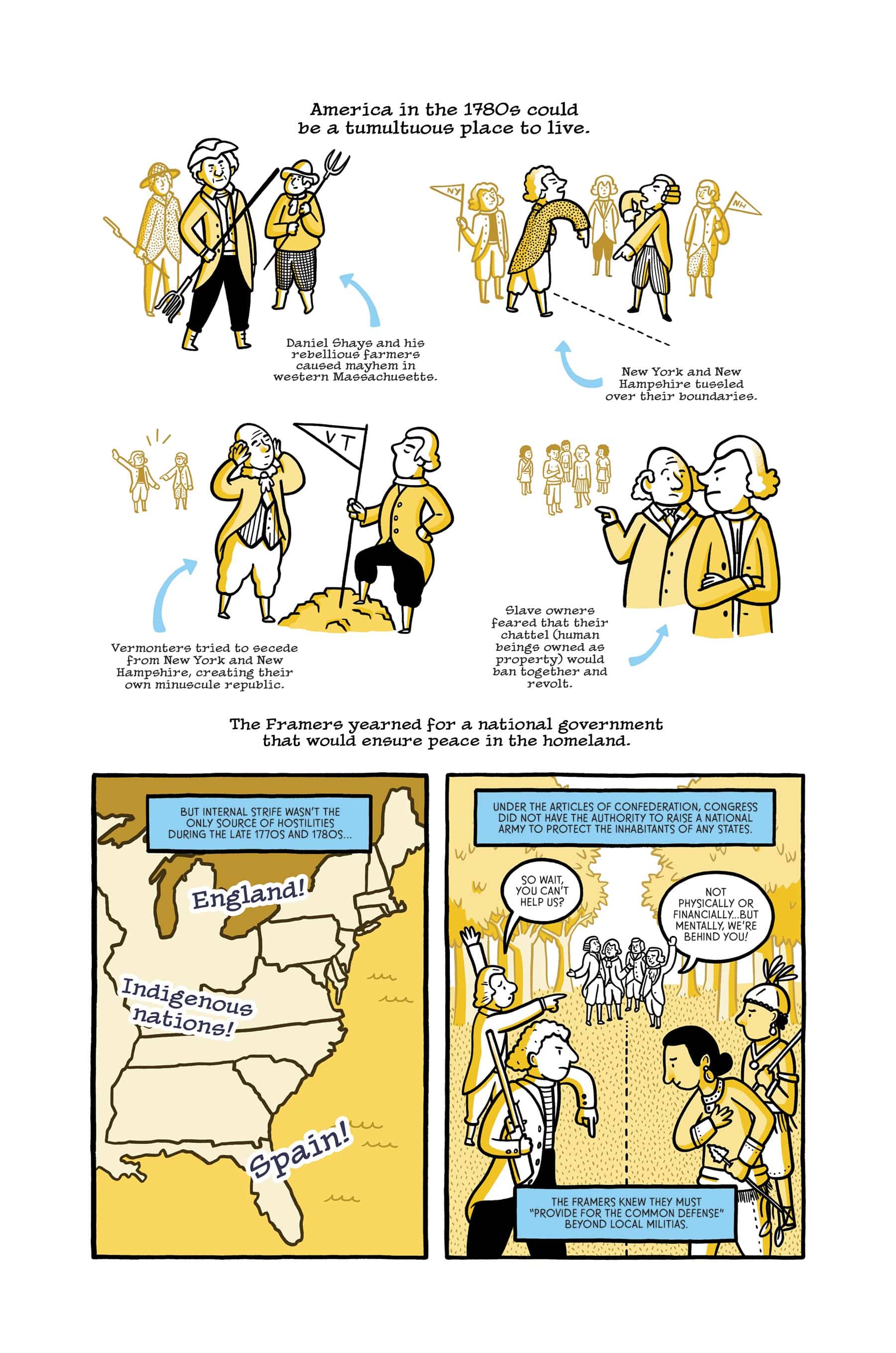 Titles include What Unites Us, written Dan Rather and Elliot Kirschner, with art by Tim Foley, an adaptation of Rathers' 2017 book, Citizen Journalist, a book by Seth Abramson teaching people how to do the activism on the twitter, with Scott McCloud attached as a consultant, The Fault Lines in the Constitution, by Cynthia and Sanford Levinson, with art by Ally Shwed, adapting that book about what needs to be updated in the Constitution and how to do it, The Media Adventurer's Handbook, by Melissa Hart, teaching readers how to decode fake news, Breaking (the) News, a comic by Jennifer L. Pozner, with art by Shelli Paroline & Braden Lamb, looking at how the media has influenced voting over the years, Unrig: How to Fix Our Broken Democracy, by Dan Newman, with art by George O'Connor, about getting the money out of politics, and Re-Constitution, by Beka Feathers, with art by Kasia Babis, about resisting authoritarianism.