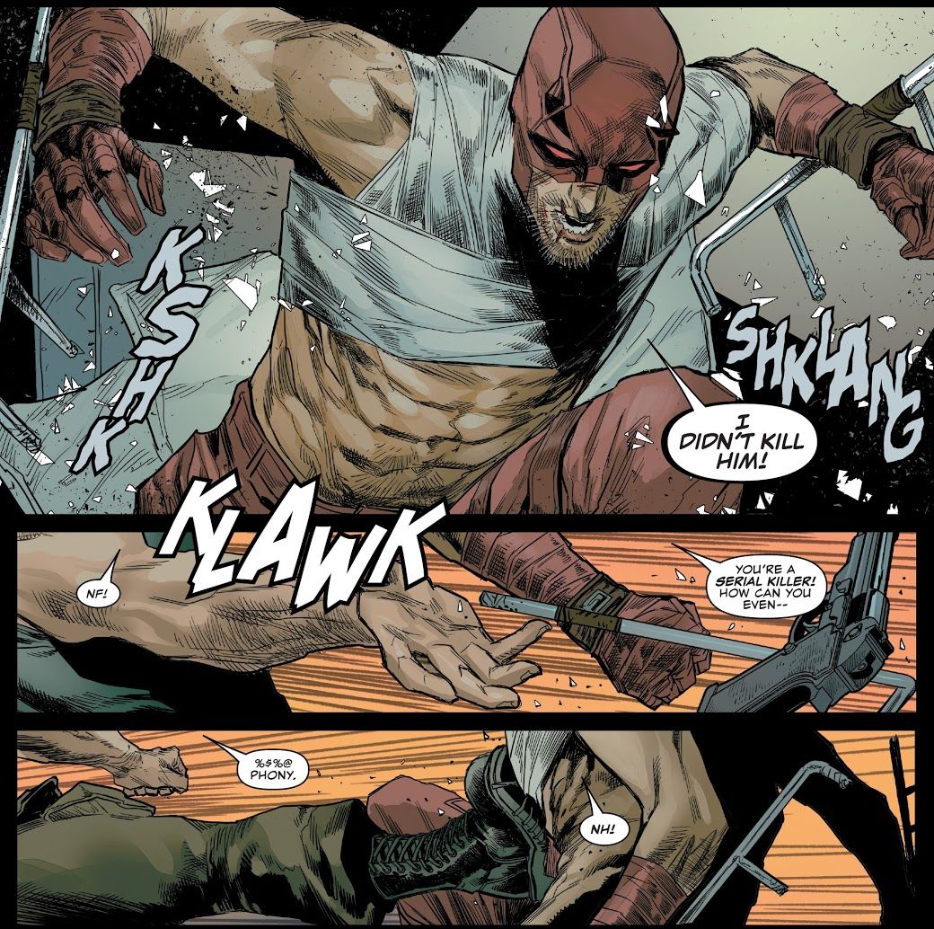 We've seen a Daredevil accused of killing a henchman, and suffering the consequences from Mayor Fisk, the police and more. With a Matt Murdock protesting his innocence – like this.