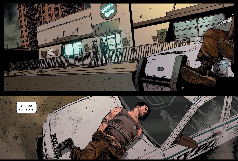 Even as Frank Castle comes by to a) gloat and b) claim Daredevil for his own. If he's even there and not the ranting of a sick, damaged man. Sorry, been reading too much Batman of late. With Daredevil making quite the claim…