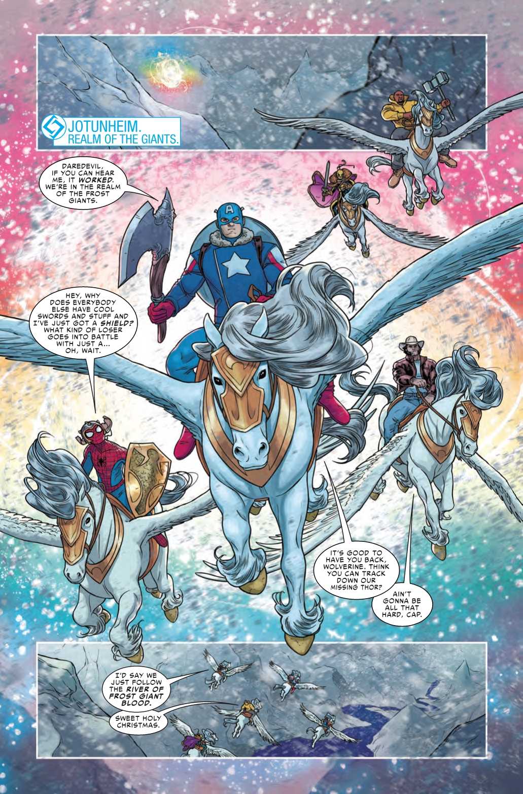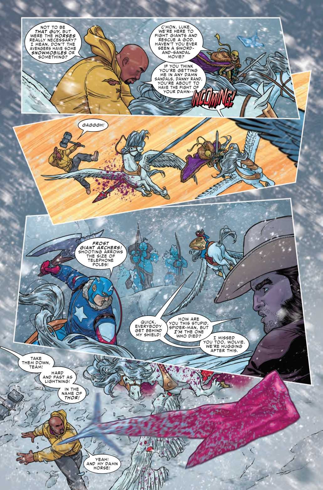 Has a nice ring to it. Meanwhile, Captain America, Luke Cage, Iron fist, Wolverine, and Spider-Man have a mission of their own, and they've got some new rides to carry them into Jotunheim to find Thor…