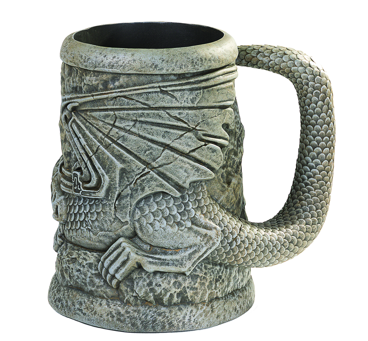 The mighty thirst of a dragon is nearly impossible to quench. When you feel that need roaring within you, there is nothing that handles the job like the Dragonstone stein. Featuring the iconic draconic wall relief in Dragonstone Castle, this stein appears to be carved from stone with the finest touch. Feel the texture of the dragon's wings and tail in such detail that you may forget all about your delicious beverage!