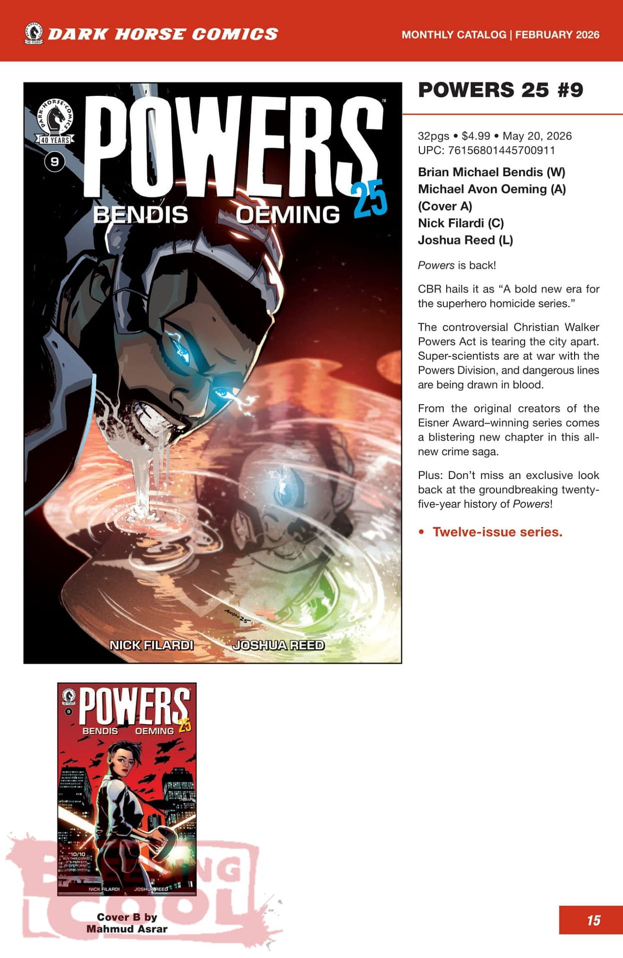 Plus: Don't miss an exclusive look back at the groundbreaking twenty-five-year history of Powers! • Twelve-issue series. 32pgs • $4.99 • May 20, 2026