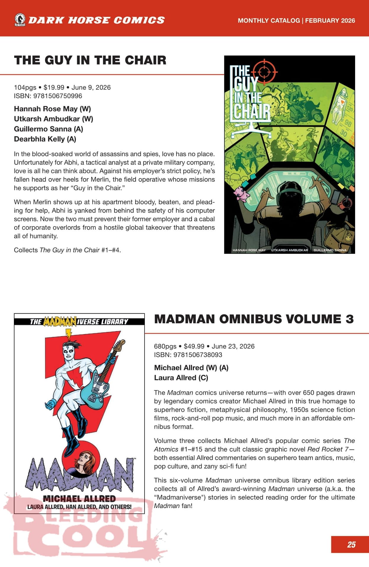 THE GUY IN THE CHAIR In the blood-soaked world of assassins and spies, love has no place. Unfortunately for Abhi, a tactical analyst at a private military company, love is all he can think about. Against his employer's strict policy, he's fallen head over heels for Merlin, the field operative whose missions he supports as her "Guy in the Chair." When Merlin shows up at his apartment bloody, beaten, and pleading for help, Abhi is yanked from behind the safety of his computer screens. Now the two must prevent their former employer and a cabal of corporate overlords from a hostile global takeover that threatens all of humanity. Collects The Guy in the Chair #1–#4. 104pgs • $19.99 • June 9, 2026