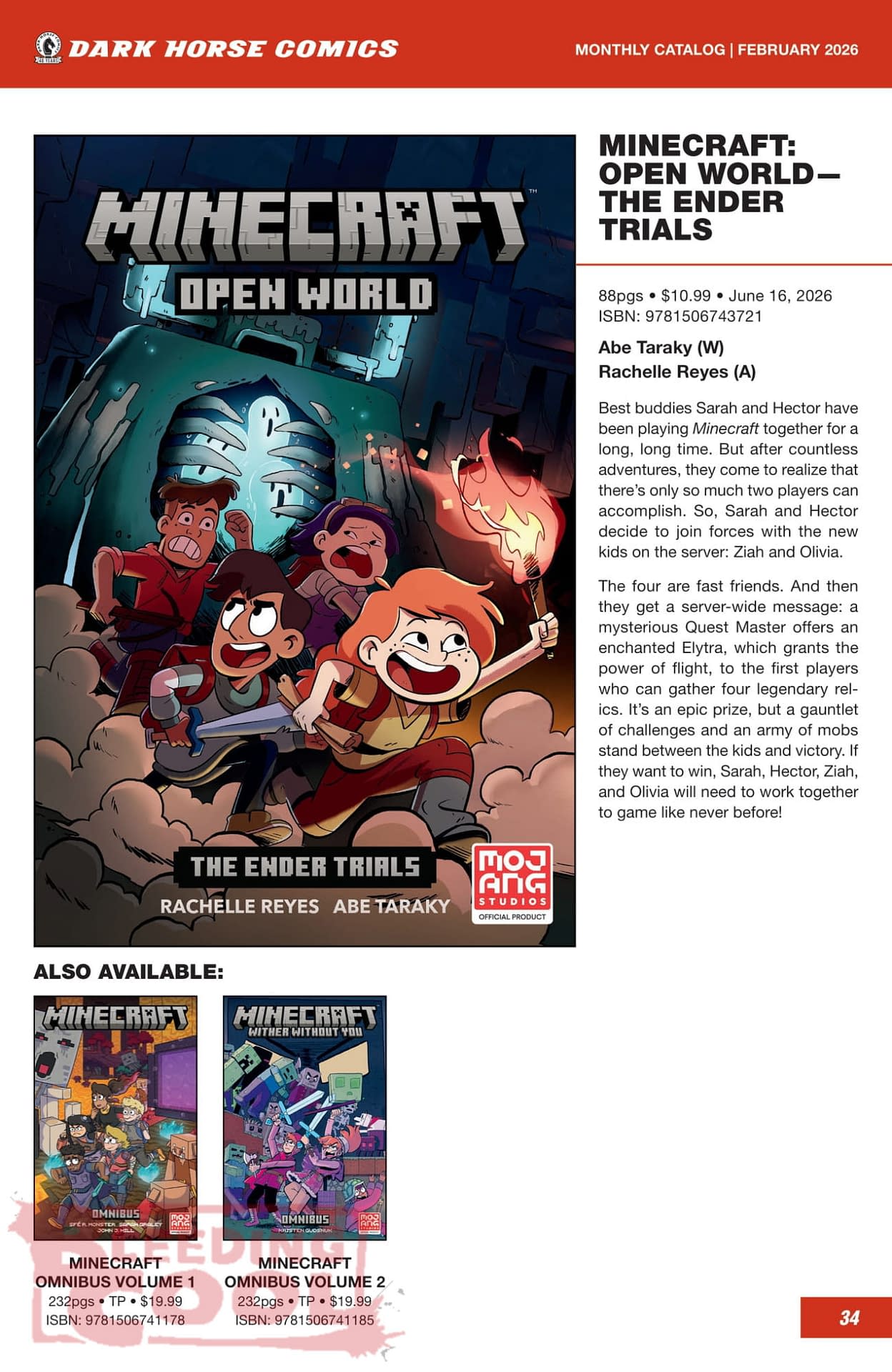 Best buddies Sarah and Hector have been playing Minecraft together for a long, long time. But after countless adventures, they come to realize that there's only so much two players can accomplish. So, Sarah and Hector decide to join forces with the new kids on the server: Ziah and Olivia. The four are fast friends. And then they get a server-wide message: a mysterious Quest Master offers an enchanted Elytra, which grants the power of flight, to the first players who can gather four legendary relics. It's an epic prize, but a gauntlet of challenges and an army of mobs stand between the kids and victory. If they want to win, Sarah, Hector, Ziah, and Olivia will need to work together to game like never before! 88pgs • $10.99 • June 16, 2026