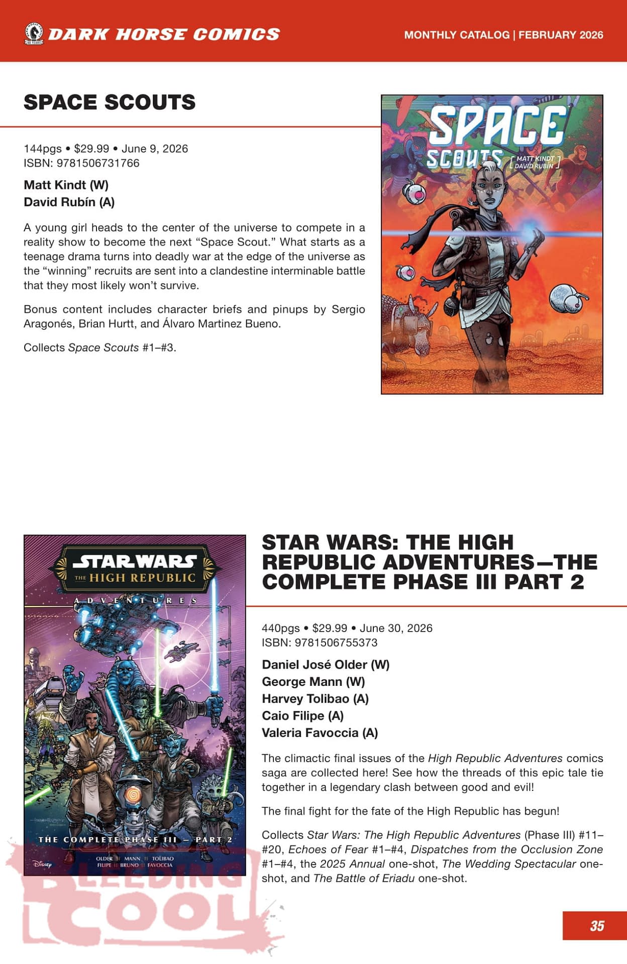 A young girl heads to the center of the universe to compete in a reality show to become the next "Space Scout." What starts as a teenage drama turns into deadly war at the edge of the universe as the "winning" recruits are sent into a clandestine interminable battle that they most likely won't survive. Bonus content includes character briefs and pinups by Sergio Aragonés, Brian Hurtt, and Álvaro Martinez Bueno. Collects Space Scouts #1–#3. 144pgs • $29.99 • June 9, 2026