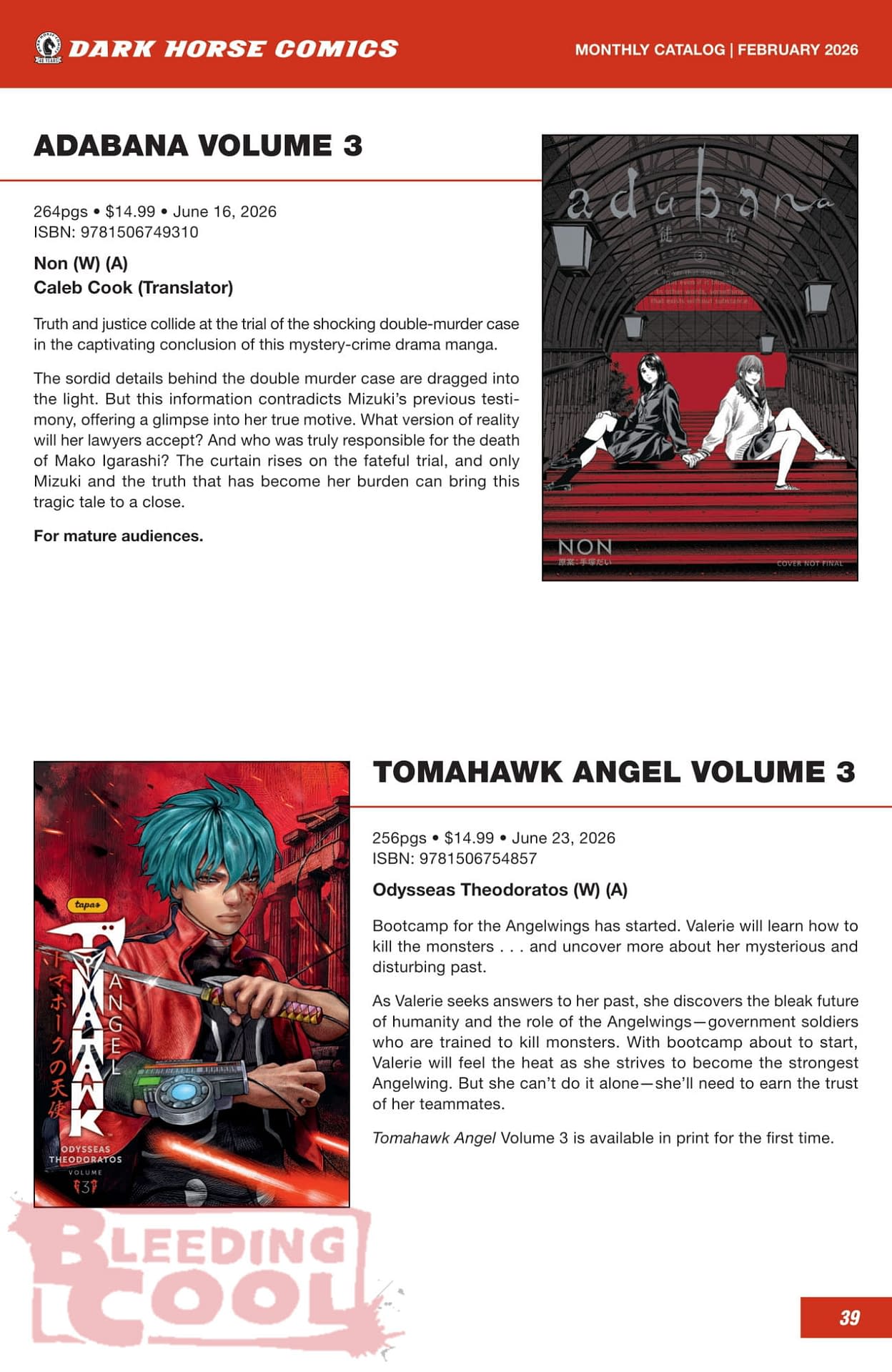 Bootcamp for the Angelwings has started. Valerie will learn how to kill the monsters . . . and uncover more about her mysterious and disturbing past. As Valerie seeks answers to her past, she discovers the bleak future of humanity and the role of the Angelwings—government soldiers who are trained to kill monsters. With bootcamp about to start, Valerie will feel the heat as she strives to become the strongest Angelwing. But she can't do it alone—she'll need to earn the trust of her teammates. Tomahawk Angel Volume 3 is available in print for the first time. 256pgs • $14.99 • June 23, 2026