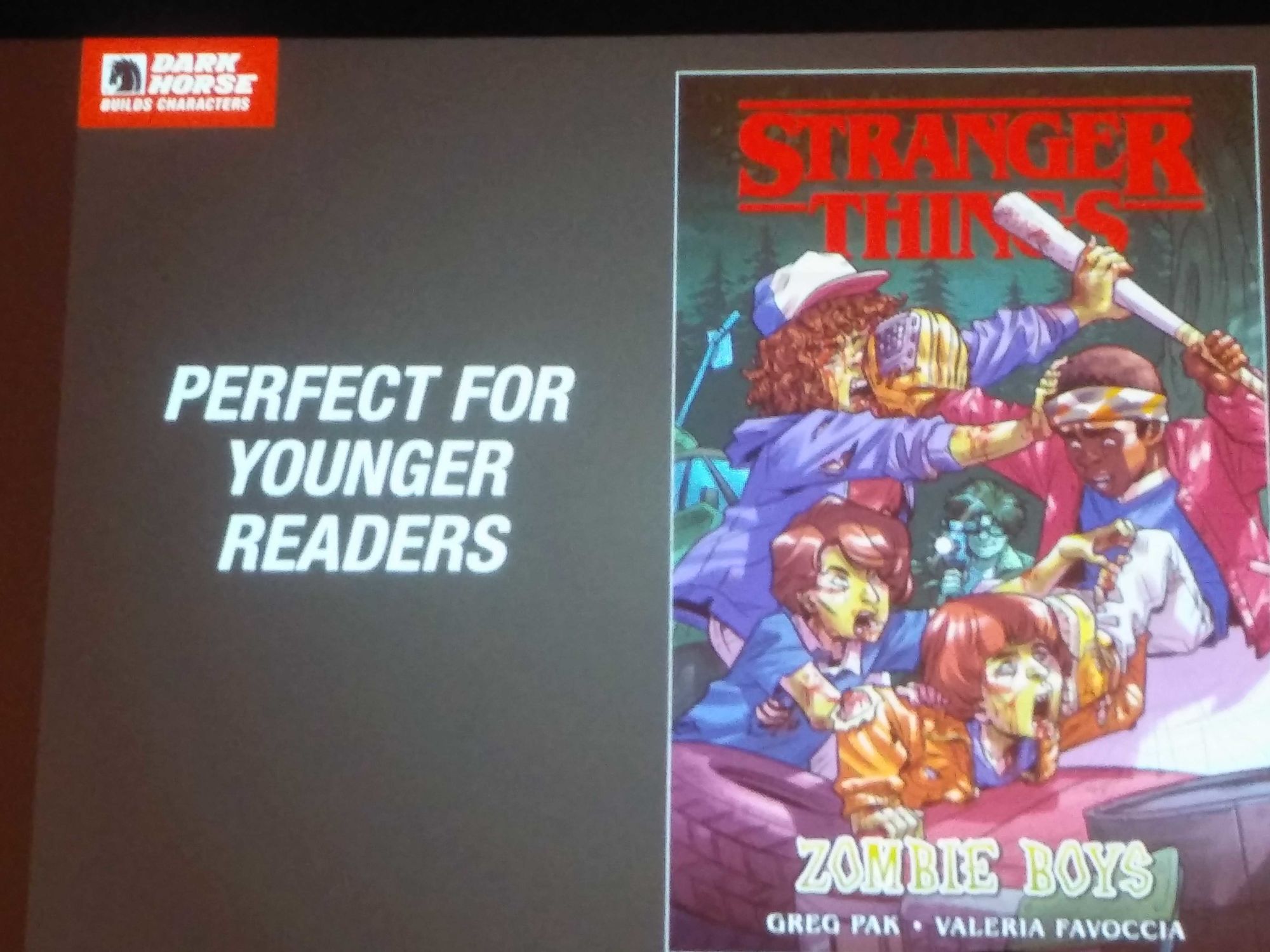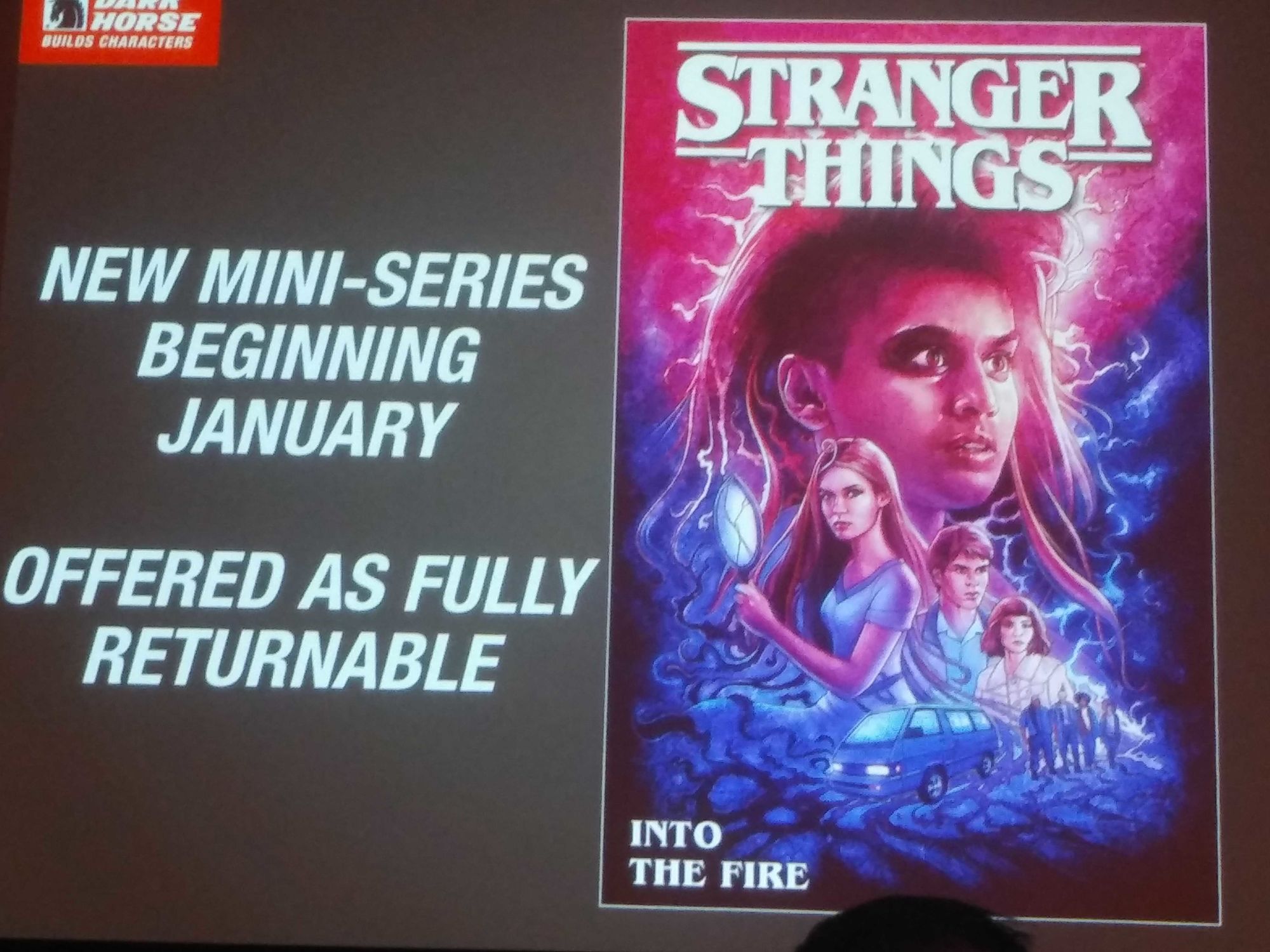 Dark Horse comics is presenting at the Diamond Retailer Breakfast at New York Comic Con, and Bleeding Cool's ace reporters are embedded on the scene, sending us live updates. Dark Horse spent most of the presentation talking about things that were previously announced, but they did drop some news: a new Stranger Things mini-series will launch in January, called Into the Fire, taking place after Season 2 of the hit Netflix show.