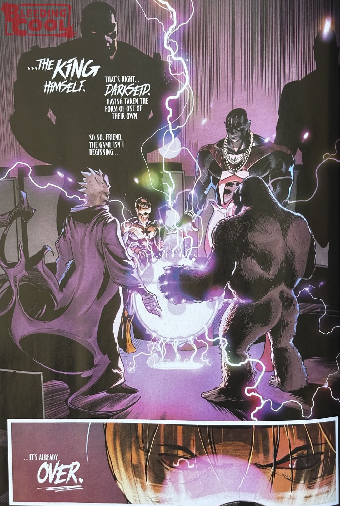 DC K.O. #1 (OF 4) by Scott Snyder and Javier Fernandez is published by DC Comics today. With the DC heroes and villains stepping up to take the role of the King Omega, granted by the Heart Of Apokalips, the Omega Engine, to take on Darkseid or… to rule the Earth themselves.