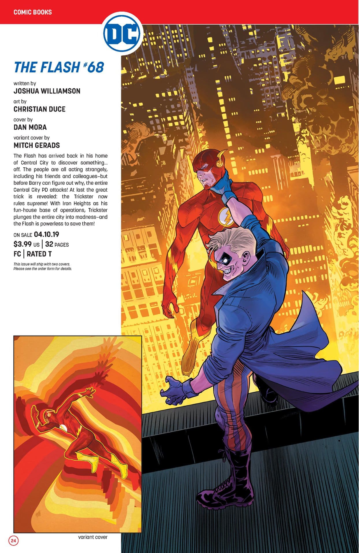 In these tales, the mayor of Keystone asks the Flash to relocate himself away from Keystone City—but trouble still manages to find the Fastest Man Alive in his new home of Santa Marta. First, the Flash saves a presidential candidate from the Top, a member of the Rogues. Then, Mr. Frost strikes—and his illusions threaten to destroy both the Flash and his new home. And when word spreads that the Flash has moved to a new city, several of his greatest foes show up to cause trouble, including the earthquake-causing Major Disaster! Collects THE FLASH #119-129, THE FLASH/GREEN LANTERN: FASTER FRIENDS #1-2, THE FLASH PLUS NIGHTWING #1 and a story from DC UNIVERSE HOLIDAY BASH #1.