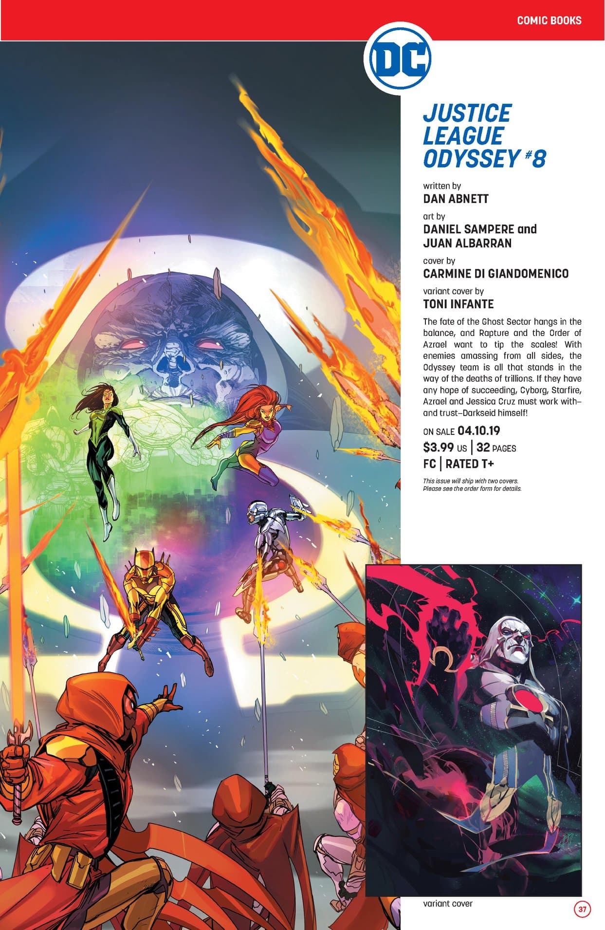 When a cosmic menace threatens worlds beyond our own in the Ghost Sector, it falls to a new Justice League team to answer the call to battle! Cyborg, Starfire, Green Lantern Jessica Cruz and an out-of-his-element Azrael head to deep space inside a commandeered Brainiac Skull Ship. These wild-card teammates try to stop Despero from slave-trading Coluan refugees, only to discover something that nothing in the universe could have prepared them for: Darkseid…who says he's there to help?! Collects issues #1-5, plus a section featuring behind-the-scenes art by Stjepan Sejic!