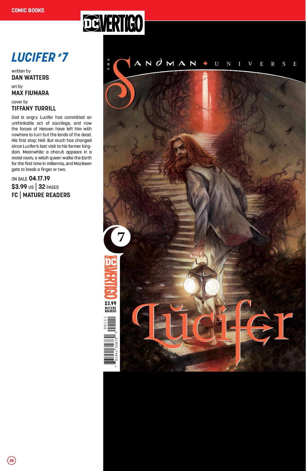 From the pages of THE SANDMAN, Lucifer Morningstar, the former Lord of Hell, is unexpectedly called back into action when he receives a mission from Heaven. But once he completes his mission, the Prince of Darkness' demand shakes the foundation of Heaven and Hell. Then, the Lightbringer begins work on a New Creation outside the bounds of any authority but his own. And Lucifer must now face the challenge of single combat to the death with his brother, the angel of the Host Amenadiel. This new Omnibus collects THE SANDMAN PRESENTS: LUCIFER #1-3, LUCIFER #1-35 and LUCIFER: NIRVANA #1.