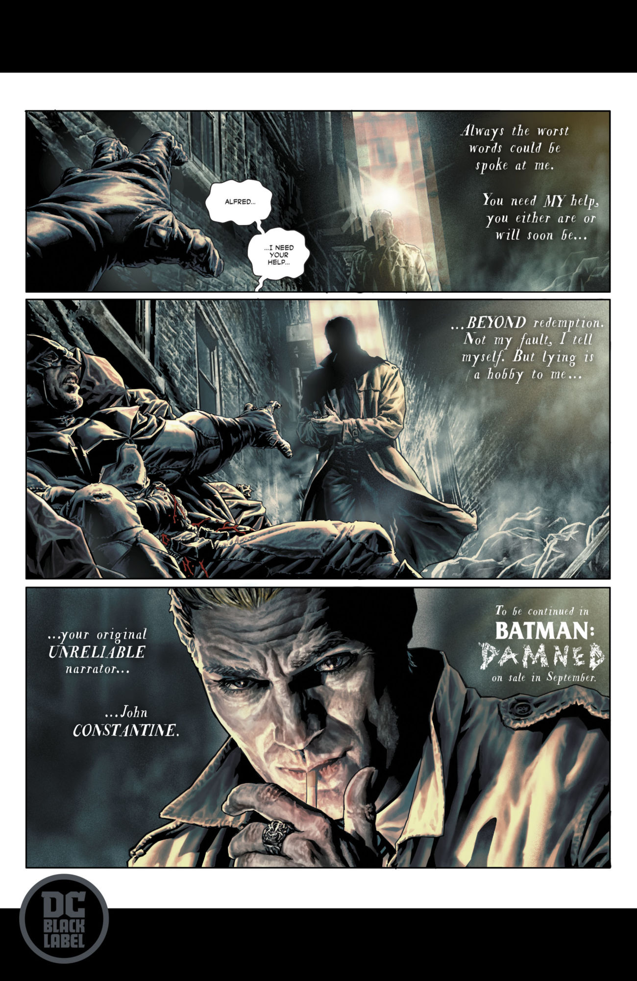 Batman: Damned #1 is the first title from DC Black Label, with its Final Order Cutoff date for Monday — hence all the previews published in today's DC titles.