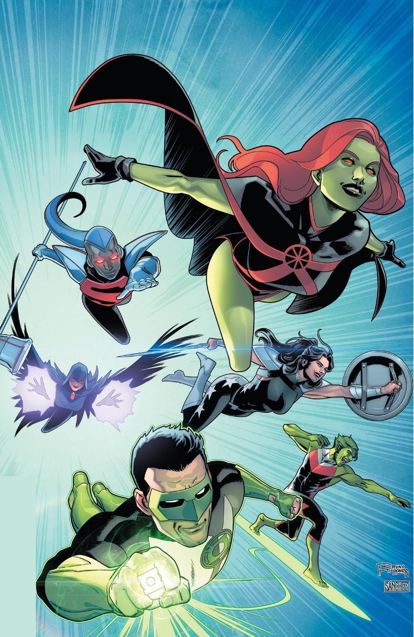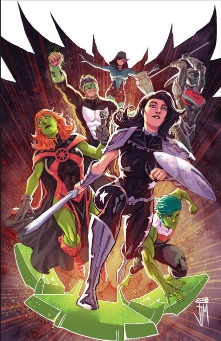 "Into the Bleed" finale! It's all been building to this! Witness the battle for the fate of the entire Multiverse as our heroes tackle Mother Blood and her armies of Unearth! Mother's plan to use the Bleed to spread her power throughout every corner of the fabric of reality has reached its zenith, and she's pulling out all the stops to see to it the Titans fail in stopping her. But even with Raven's soul-self reunited, can the team rescue their heavy hitters Kyle Rayner and Steel before it's too late? Don't miss this melee of multiversal mayhem! FINAL ISSUE