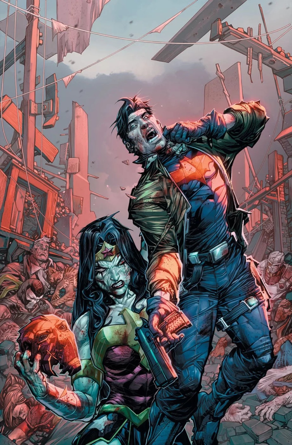 Spinning out of the dramatic events of 2019's smash hit, writer Tom Taylor returns to this dark world with a street-level tale of death, heroism and redemption. Led by Red Hood and Deathstroke, DC's hardest villains and antiheroes fight with no mercy to save the only commodity left on a dying planet of the undead—life!