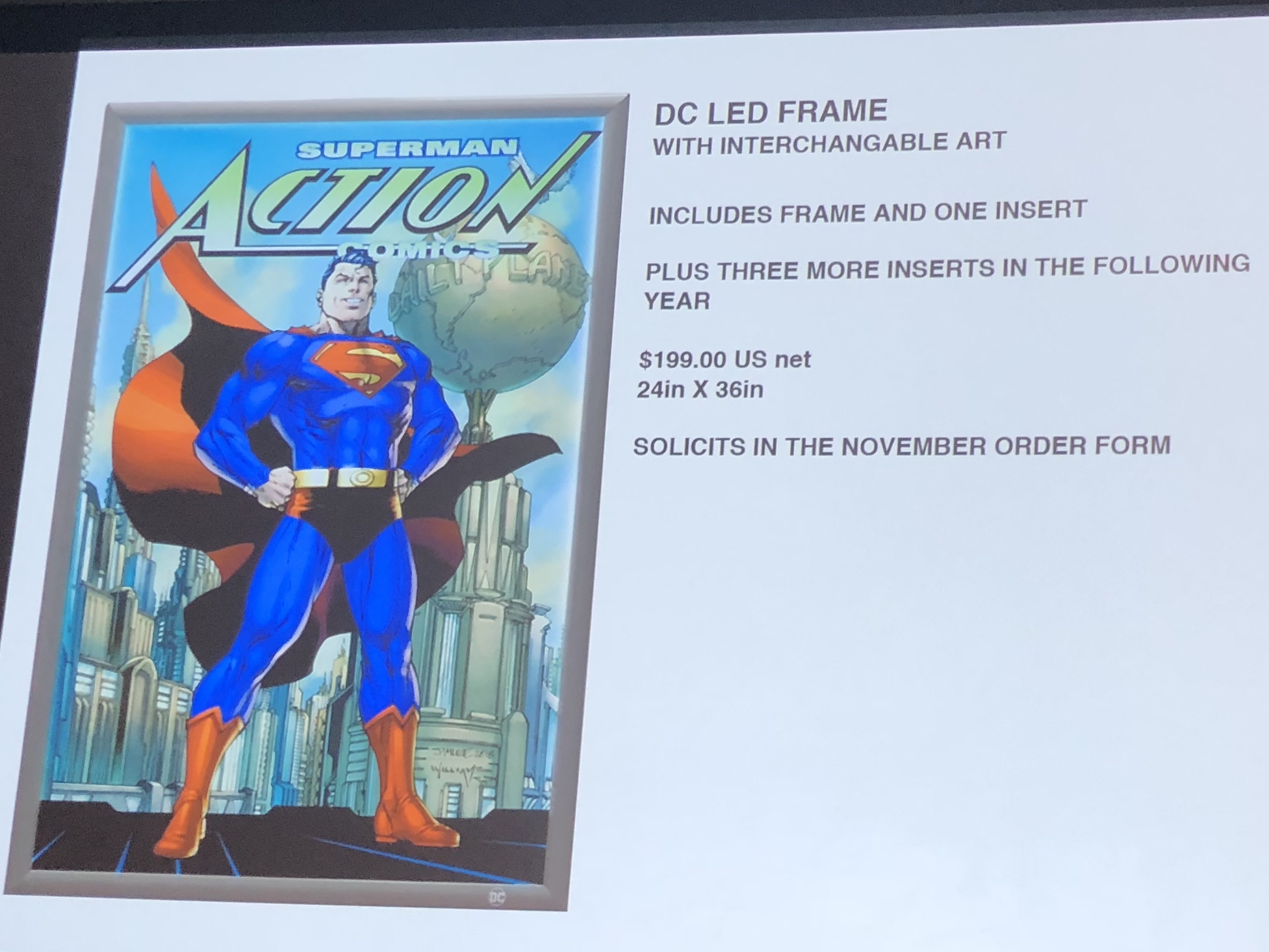 An LED frame to be hung in, or outside of, stores, that will come with a new insert every three months, promoting DC Comics product in an attractive fashion.