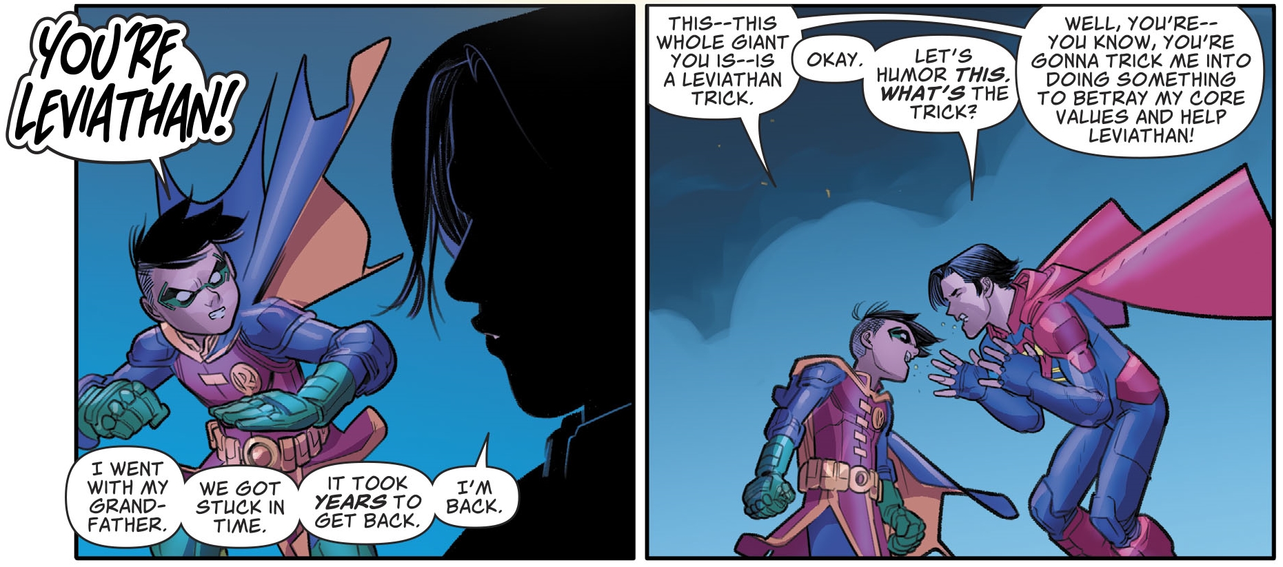 The comic book sees Damian Wayne, fresh from accusing Superboy of being Leviathan over in today's Superman #18…