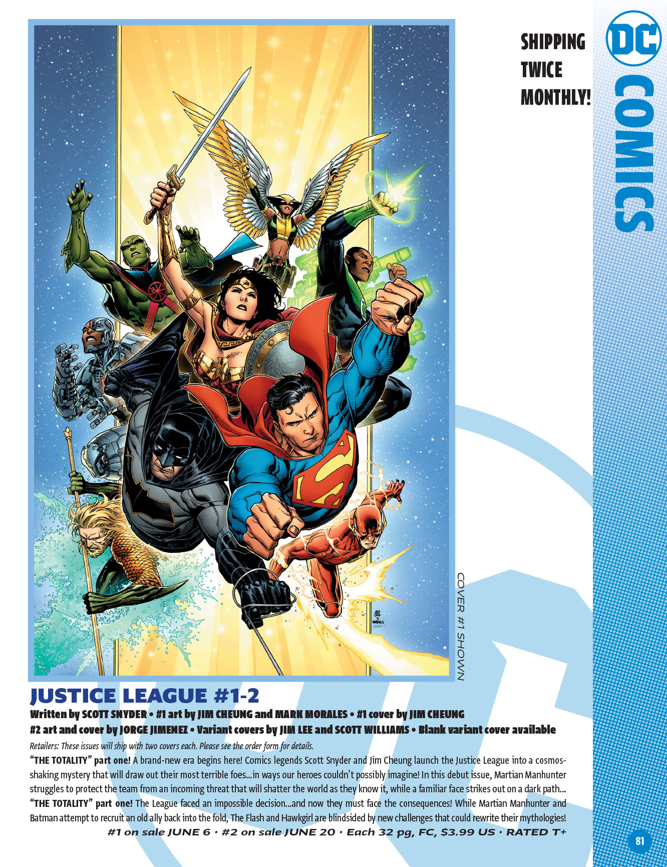 "THE TOTALITY" part one! A brand-new era begins here! Comics legends Scott Snyder and Jim Cheung launch the Justice League into a cosmos-shaking mystery that will draw out their most terrible foes…in ways our heroes couldn't possibly imagine! In this debut issue, Martian Manhunter struggles to protect the team from an incoming threat that will shatter the world as they know it, while a familiar face strikes out on a dark path…
