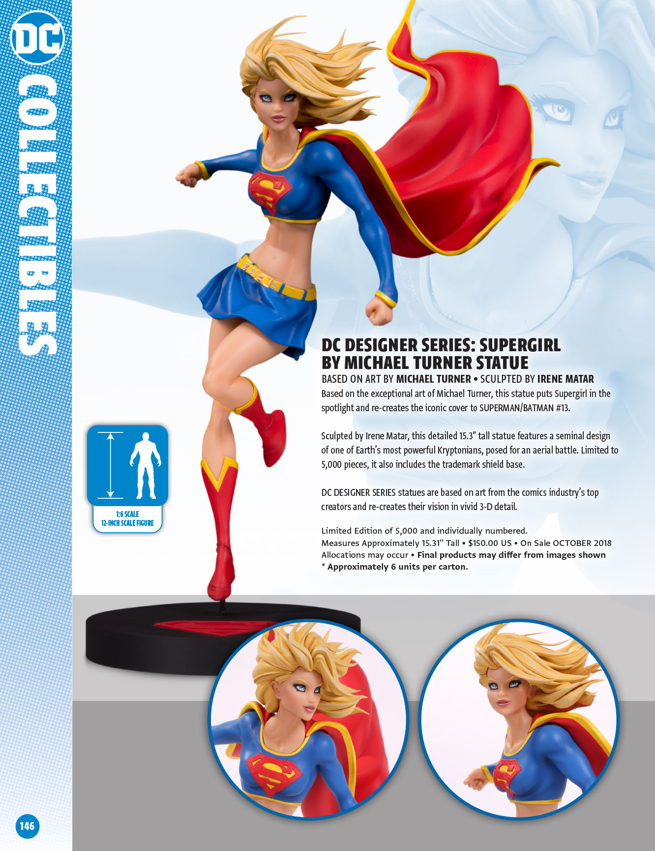 Based on the exceptional art of Michael Turner, this statue puts Supergirl in the spotlight and recreates the iconic cover to SUPERMAN/BATMAN #13.