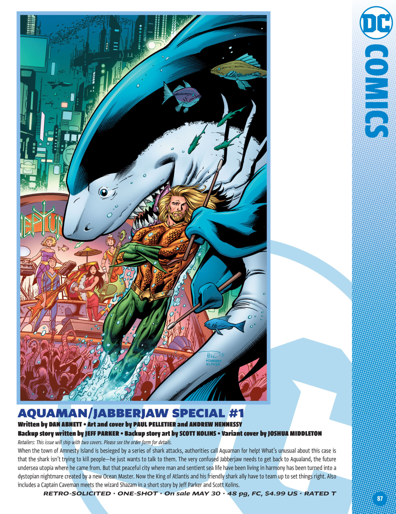When the town of Amnesty Island is besieged by a series of shark attacks, authorities call Aquaman for help! What's unusual about this case is that the shark isn't trying to kill people—he just wants to talk to them. The very confused Jabberjaw needs to get back to Aqualand, the future undersea utopia where he came from. But that peaceful city where man and sentient sea life have been living in harmony has been turned into a dystopian nightmare created by a new Ocean Master. Now the King of Atlantis and his friendly shark ally have to team up to set things right. Also includes a Captain Caveman meets the wizard Shazam in a short story by Jeff Parker and Scott Kolins.