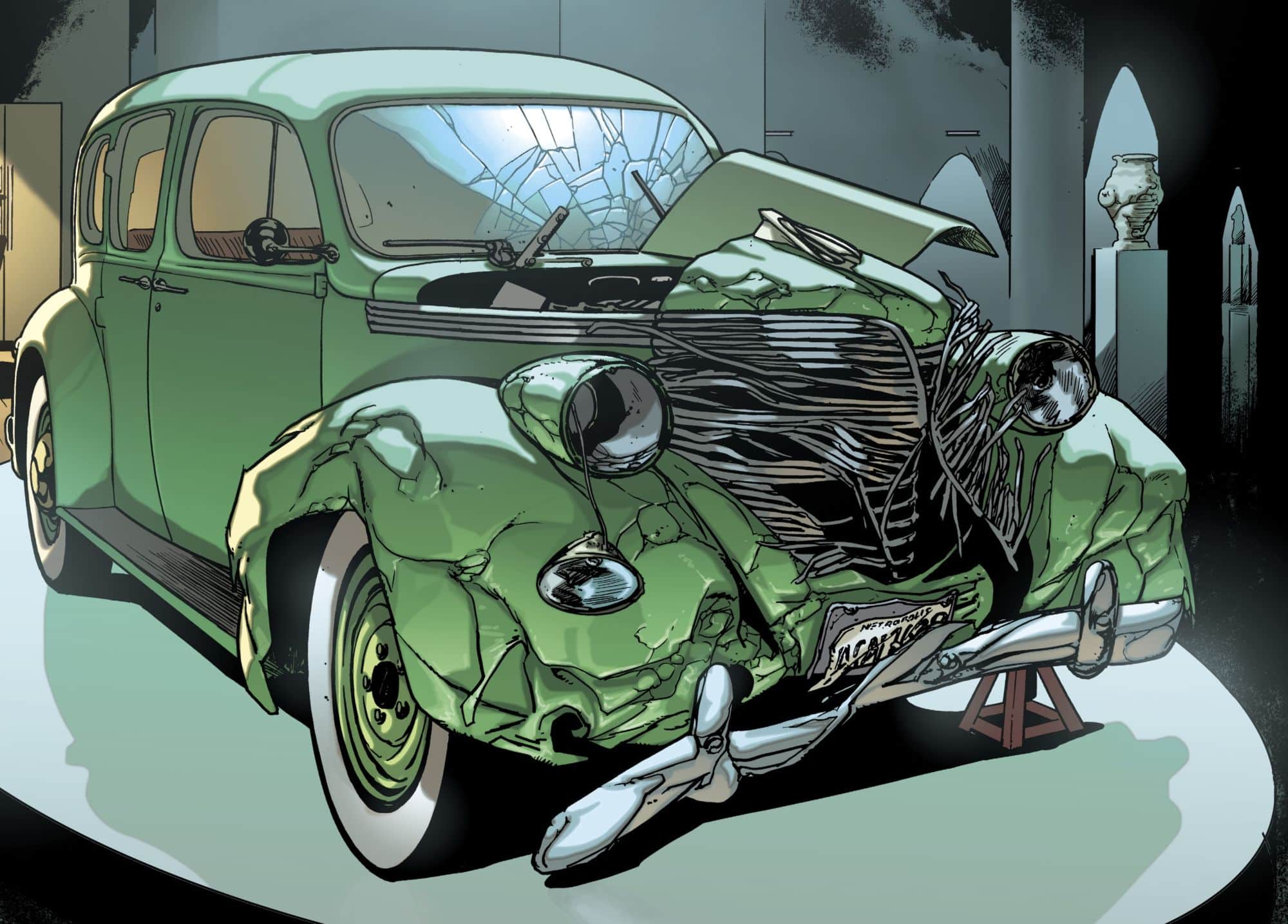 That original car. Still smashed up. And the in Doomsday Clock #10, Geoff Johns returned to the car with Gary Frank, in 1938…