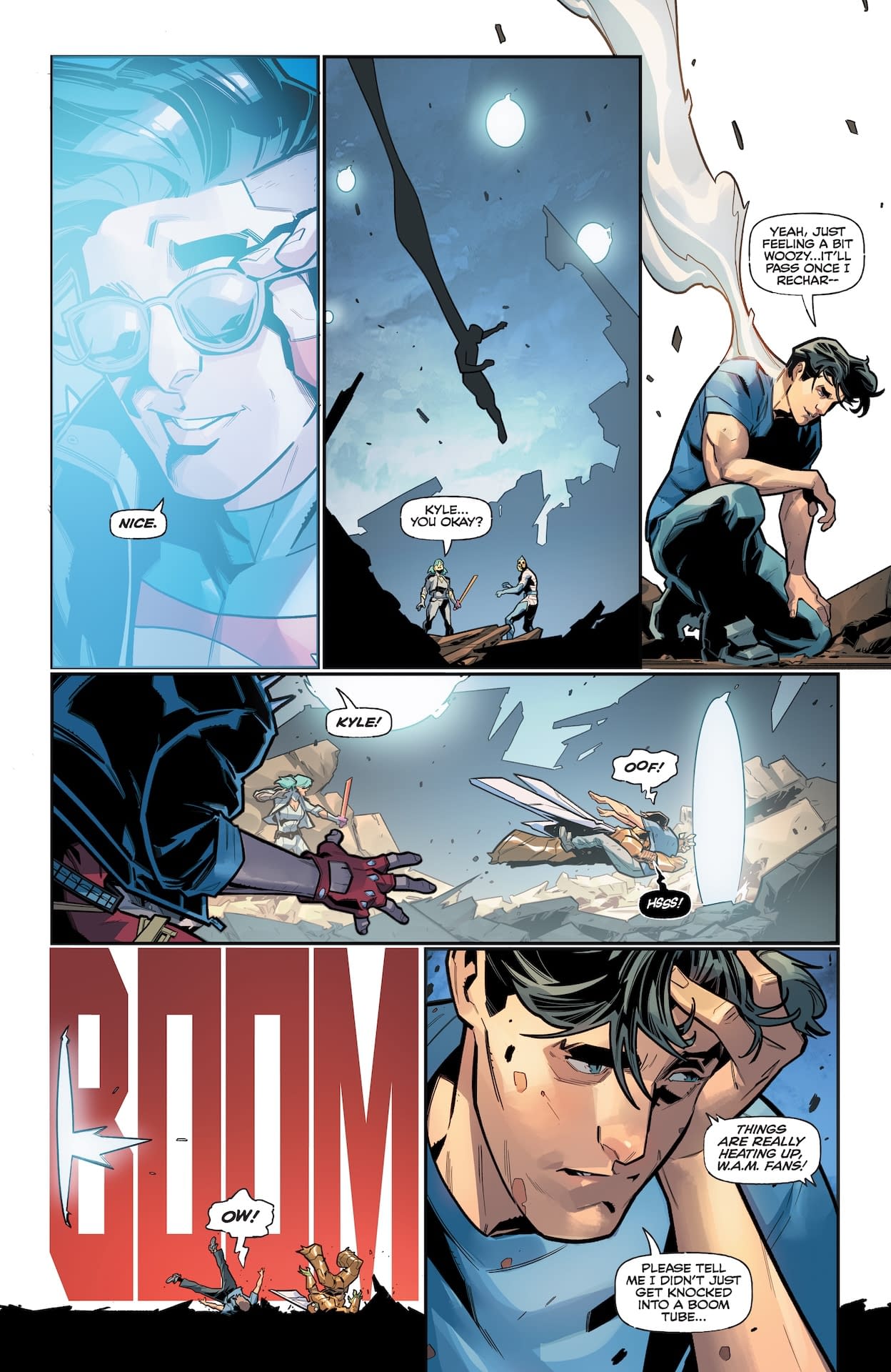 - With Green Lantern powers on the fritz, Kyle battles bizarre brawlers and faces the looming threat of Omega Bam Man.