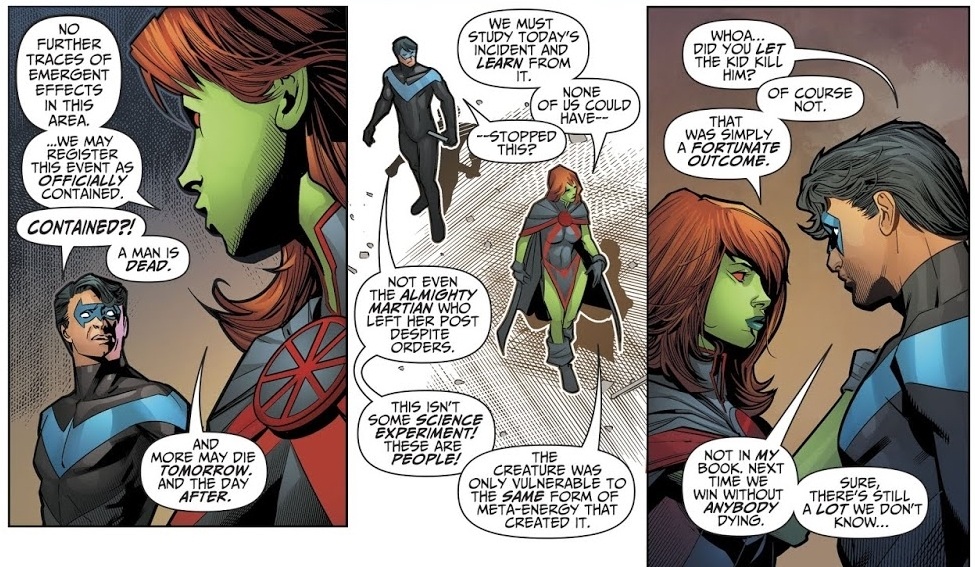 While in last week's Titans #23, the actions of Miss Martian were also veering into the fascistic.
