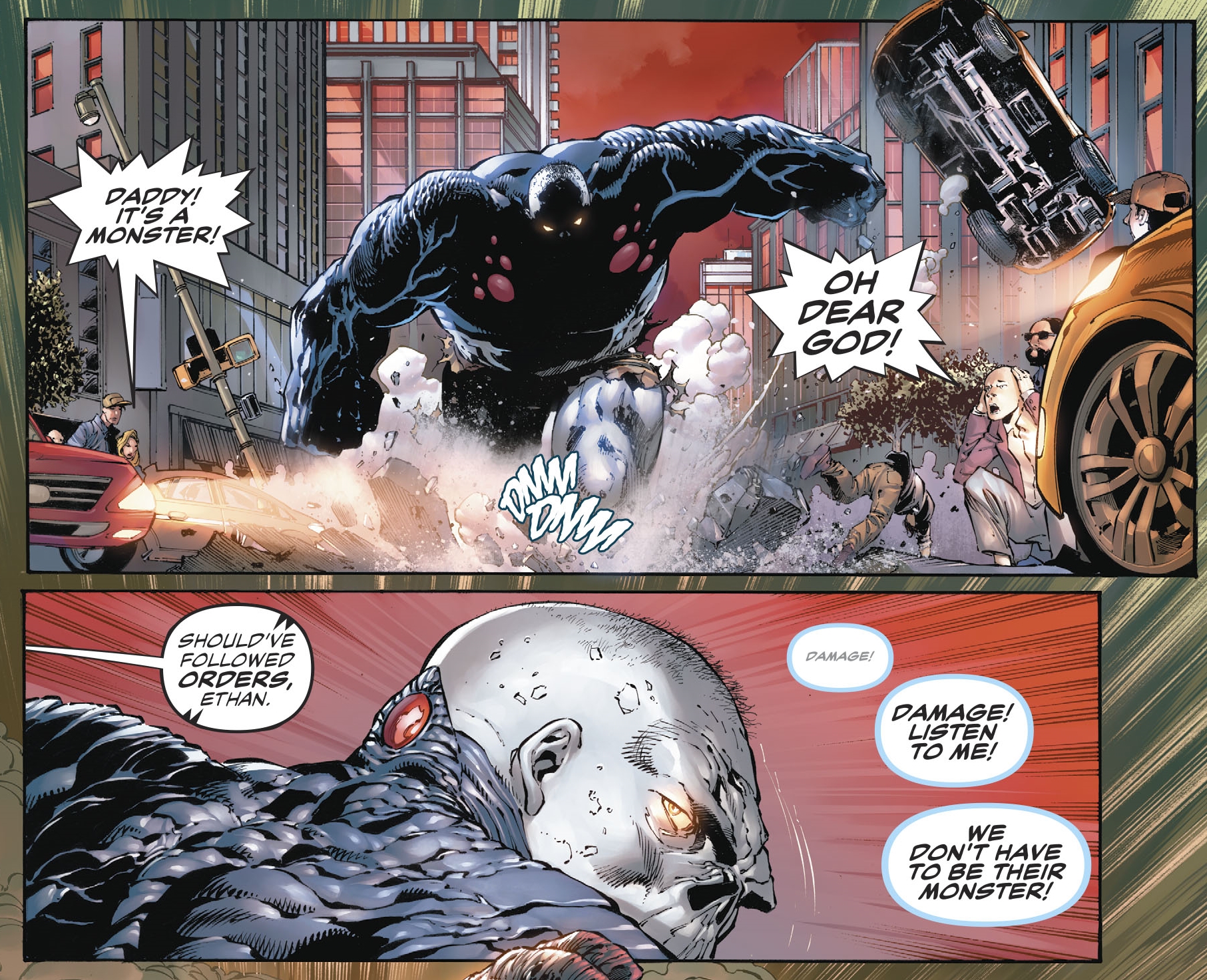 Damage #1 by Tony S. Daniel, Robert Venditti, Danny Miki, Tomeu Morey and Tom Napolitano features a rampaging monster out of control called Ethan. I wonder who that could refer to? The pilot John Nichol probably isn't Doctor Polaris. But the big centre piece sees Amanda Waller arriving with Task Force XI, the sequel to the Suicide Squad, consisting of Giganta, Parasite, Solomon Grundy, Ragman, Harley Quinn and Deadshot.