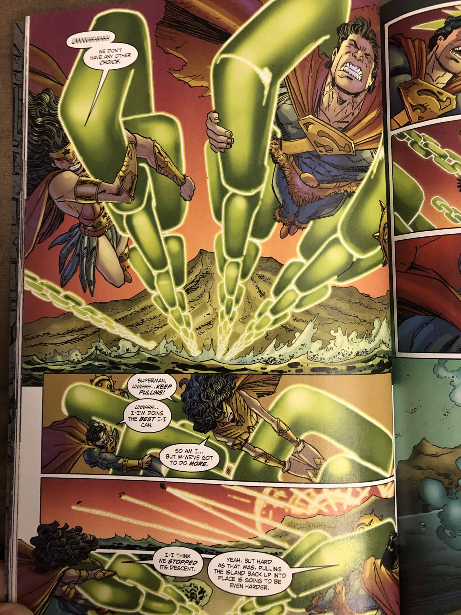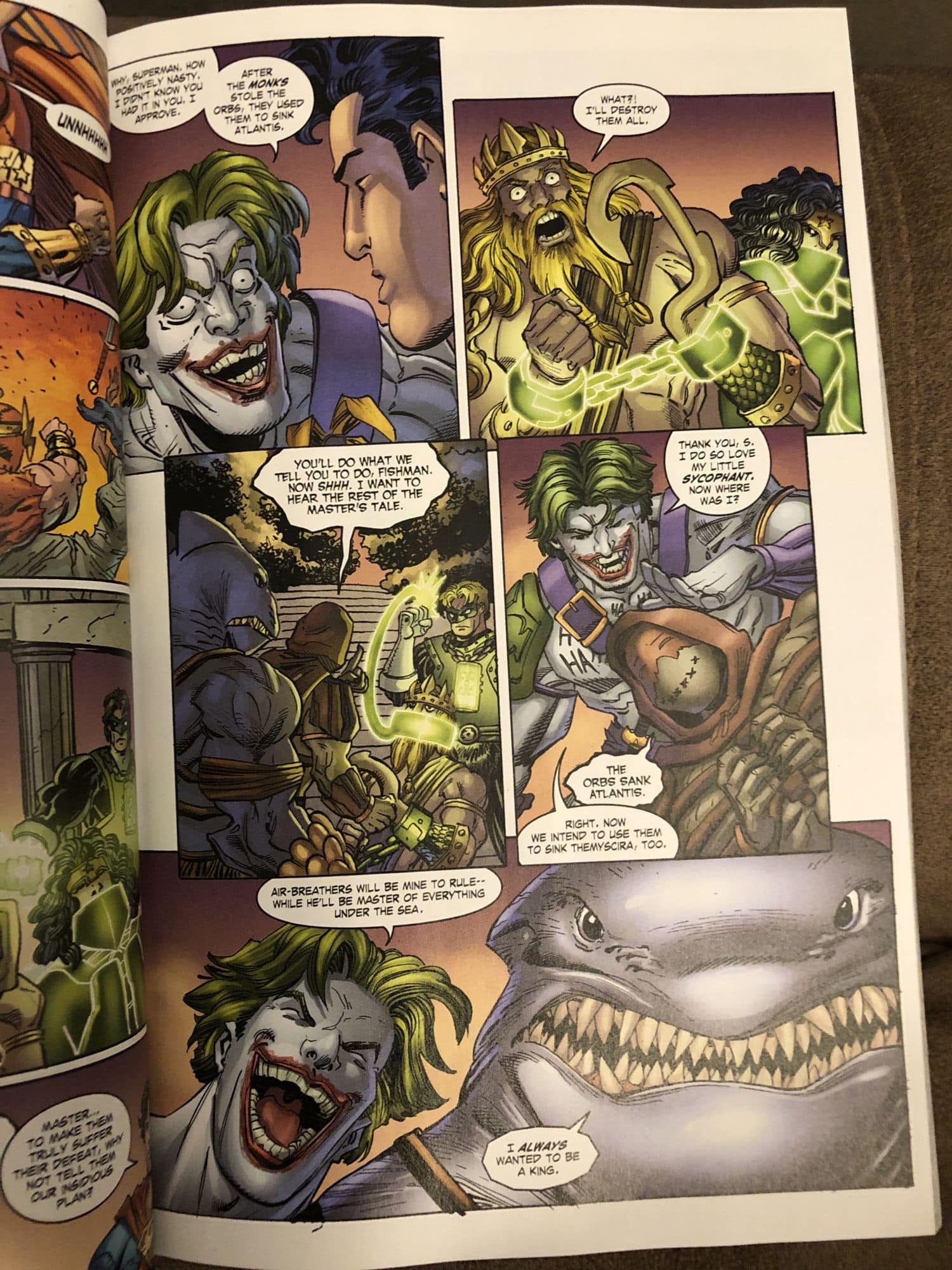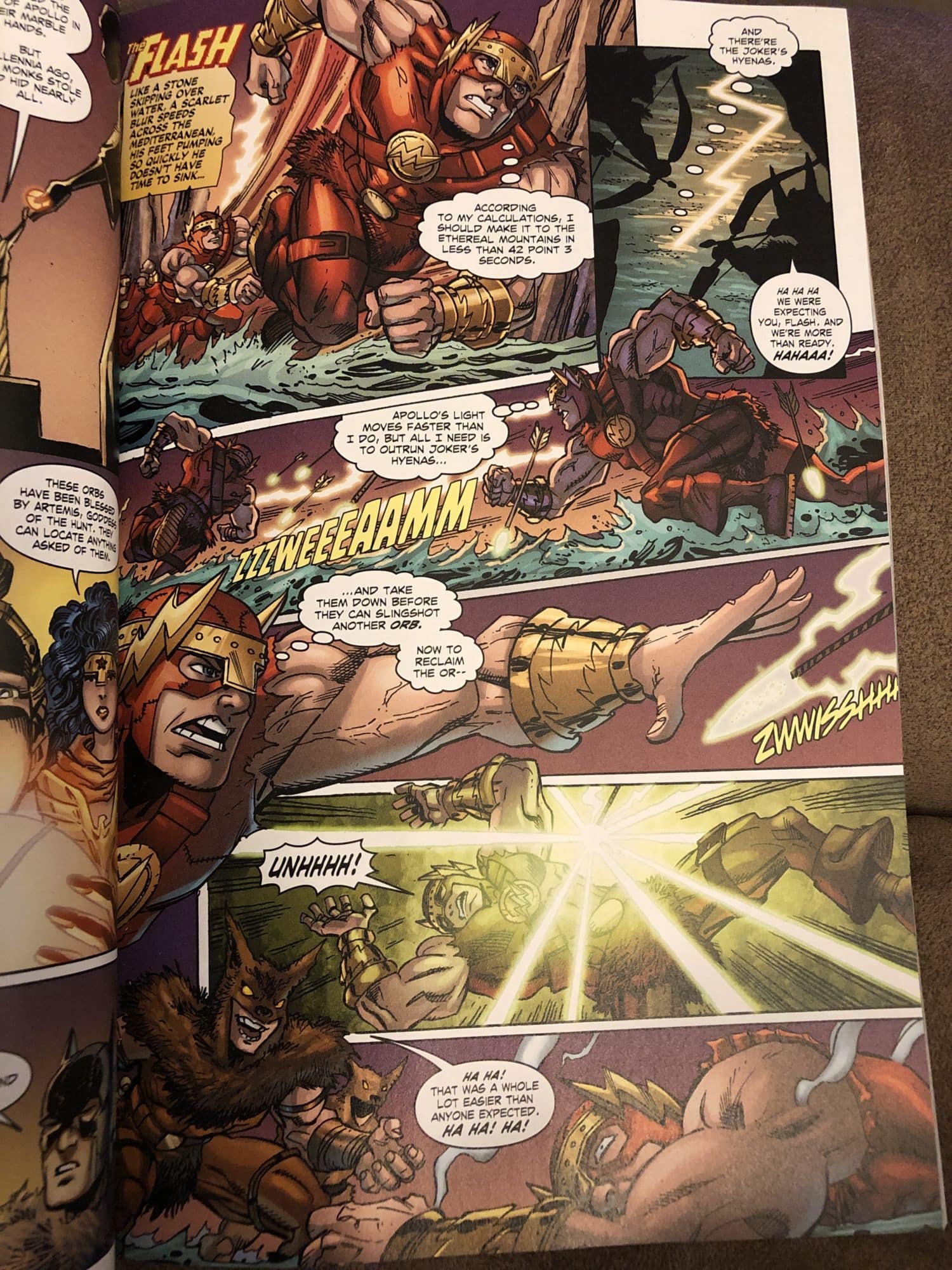 The main story is done by Marv Wolfman, Scott Koblish, Tony Avina, and Wes Abbott, and is the longest in the book. It is basically an intro story and formation for the Justice League of the Primal Age. We start with Bruce and Diana fighting over an org of power, interrupted by the Joker. After he gets away with the orb, we find out Joker is working with King Shark and Sandman to find the orbs to destroy villages. From there we are whisked away and meet Aquaman, The Flash, Superman, and Green Lantern, as they race to try and save the island of Themyscira before they can sink it.