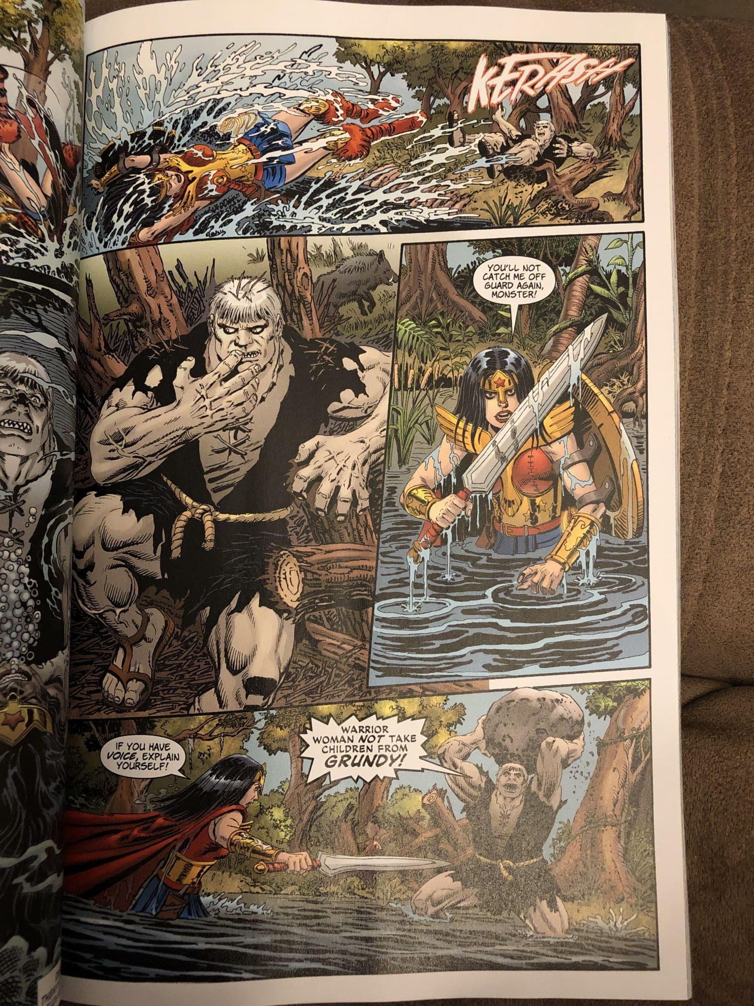 After the main story, we are treated to five shorts starring different characters and introducing Primal Age versions of others. One thing I will say for the book: this does not feel like it exists just to sell action figures. It very easily could have fallen into that trap, but it doesn't. Of the short stories, the standouts were the Wonder Woman/ Solomon Grundy one by Jerry Ordway, Wendy Broome, and Saida Temfonte, and the Mister Freeze one by Louise Simonson, Phil Winslade, Carrie Strachan, and Carlos M. Mangual. Mister Freeze as a mage using magic to save his beloved? More of that please. The Batman/ Lucious Fox story, the Joker story, and Superman/Bizzaro stories are all ok, but when a short 10 page story feels about 6 pages too short, that is a problem. Again, some of them feel unfinished. I have no idea if there is a second issue coming out, and it seems like a lot of these stories were ended with the idea that there would be another one. It makes for a very frustrating reading experience. At $9.99, it is a hard sell to ask people to fork the cash over for half stories.
