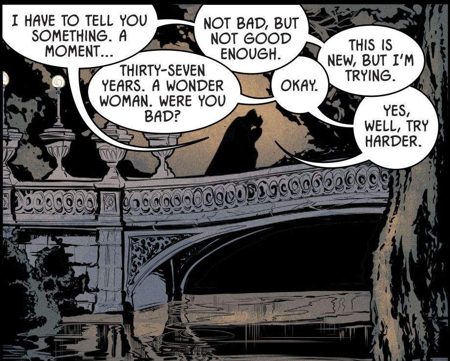 Not as awkward as today's Justice League #38. Because as Batman #40 shows us a Batman who spends decades not actually kissing Wonder Woman….