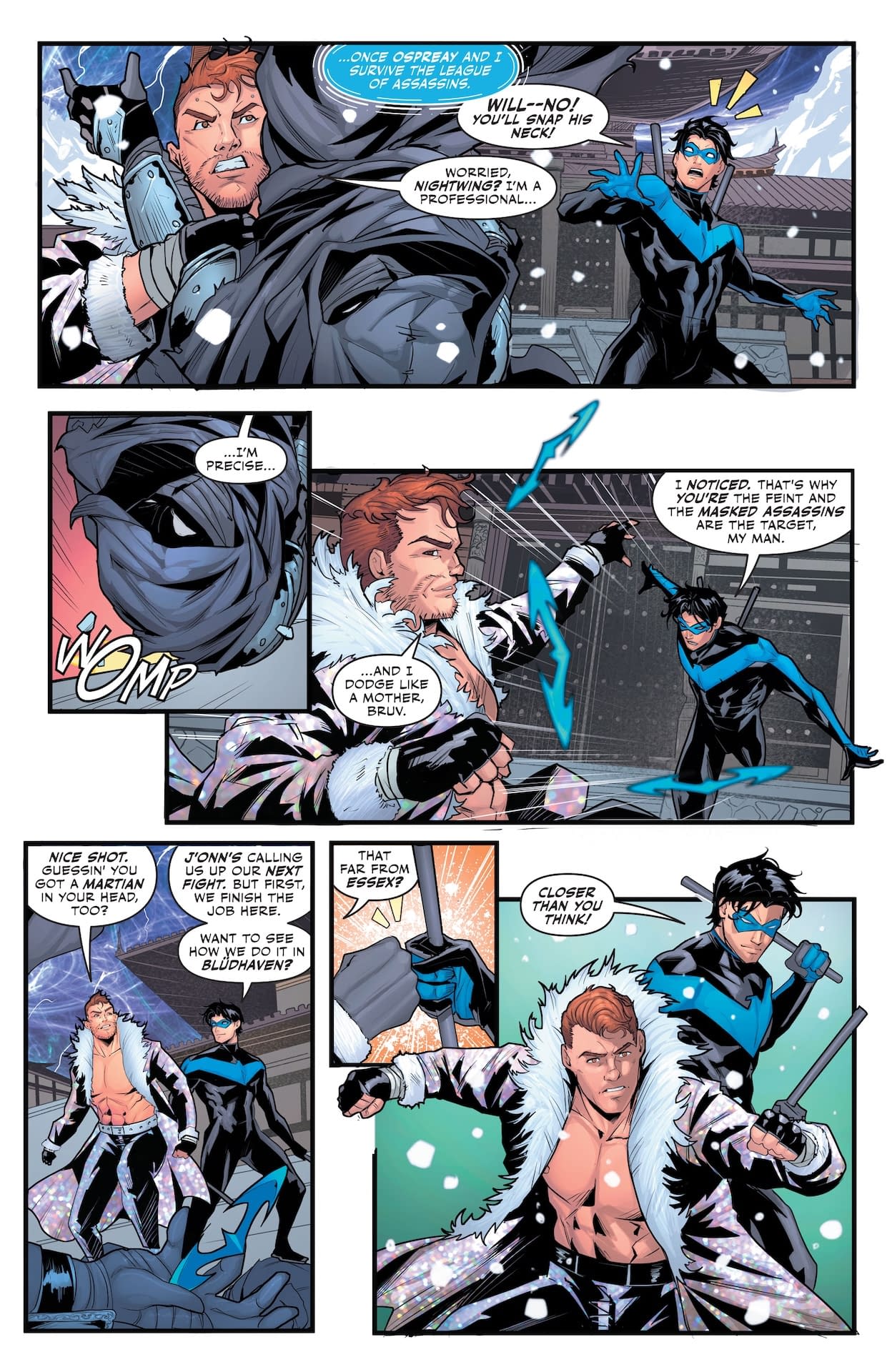 - Preview pages show Nightwing paired with Will Ospreay and Guy Gardner teamed with Jon Moxley for maximum high-flying carnage