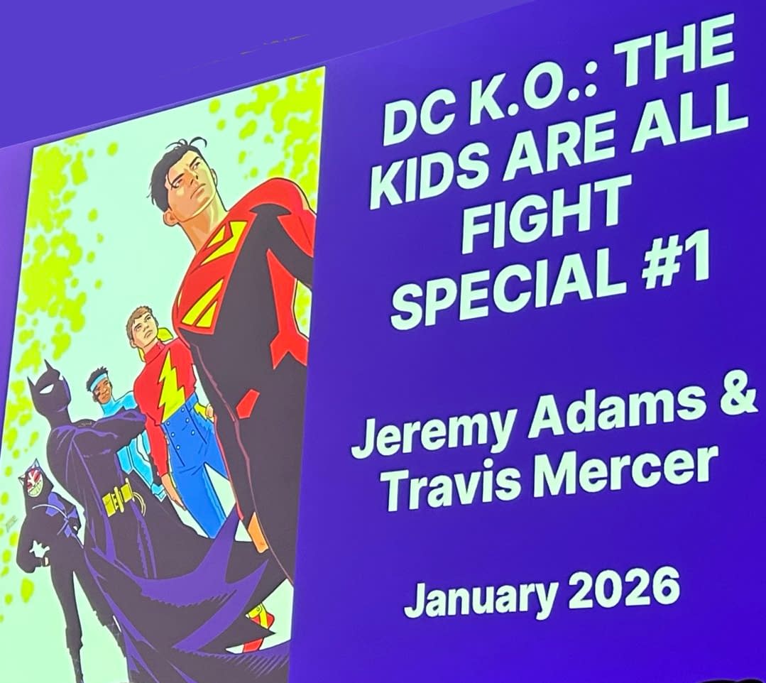 The Kids Are All Fight is a DC's K.O. one-shot for January by Jeremy Adams and Travis Mercer about the superhero kids finding something to do while their parents are away fighting the good (or bad) fight. And announced at New York Comic Con in the DC panels…