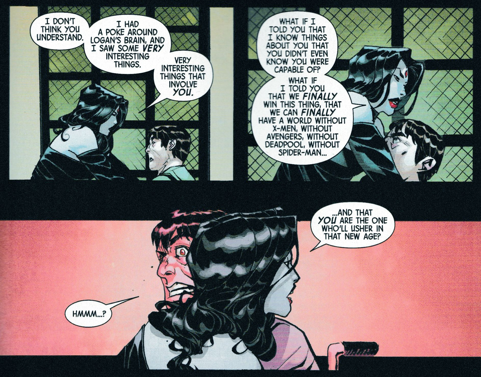 And it is she who may wake Mysterio up to just what he could do. To Logan, to the X-Men, to the future of the timeline.