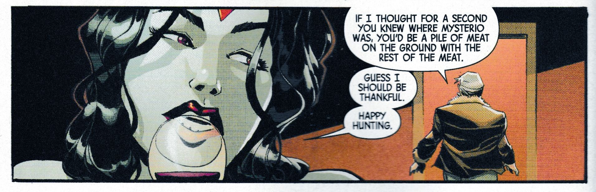 But in the process, letting Ms Sinister know that he's looking for Mysterio – and why.