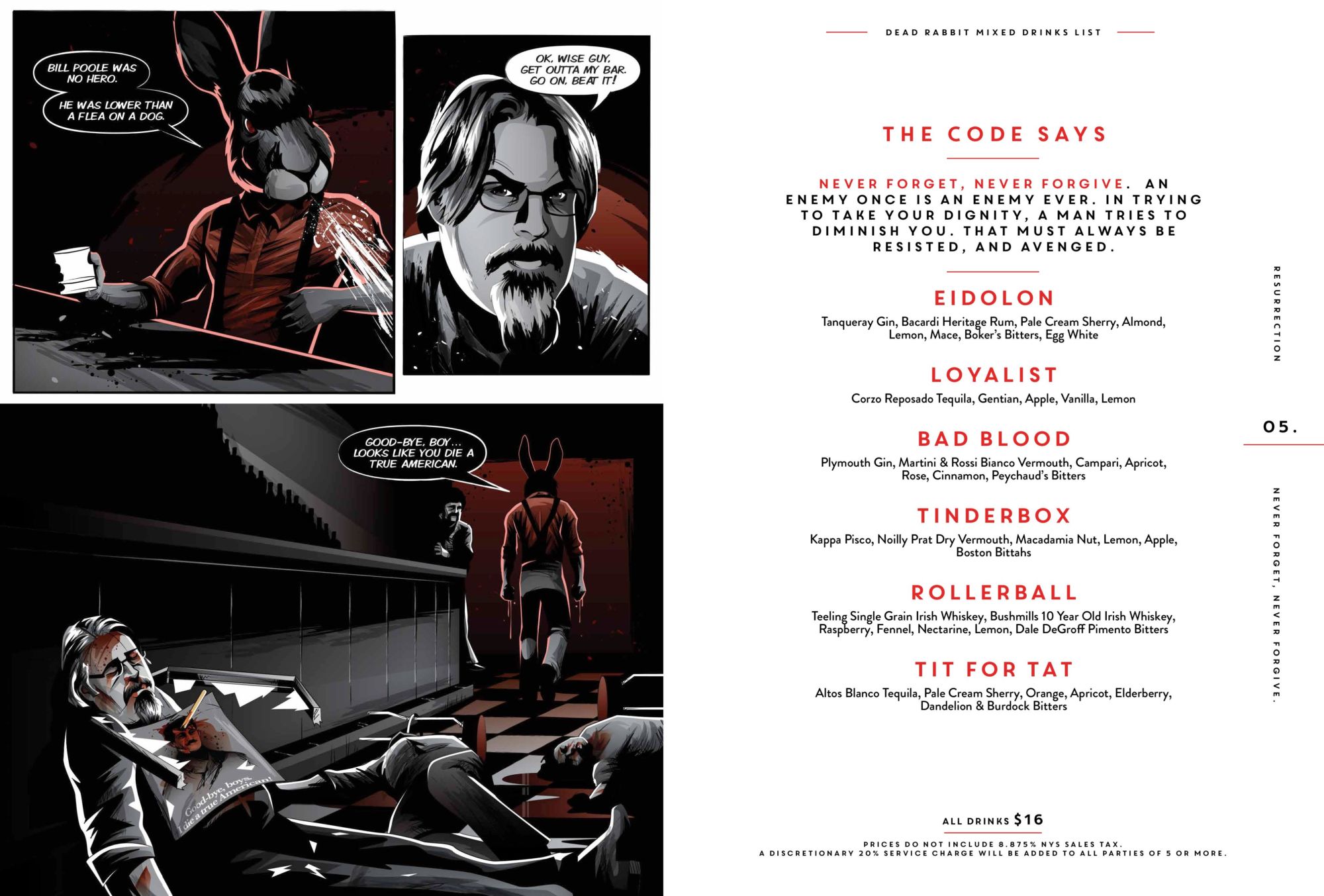 THE FOURTH INSTALLMENT OF OUR NOW LEGENDARY MENU BRINGS DEAD RABBIT GANG LEADER JOHN MORRISSEY BACK TO LIFE. AND, NATURALLY, MAYHEM ENSUES.